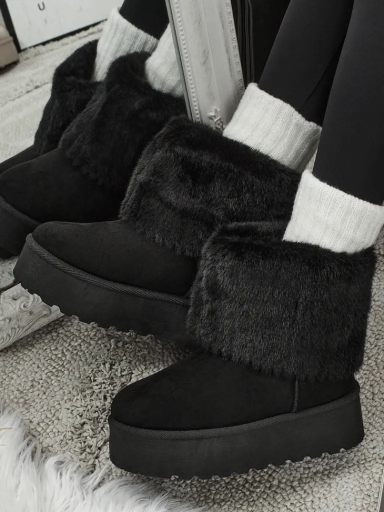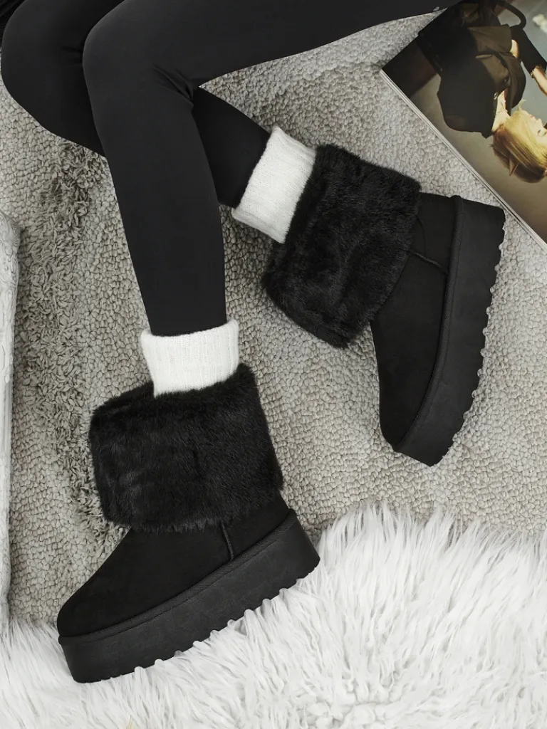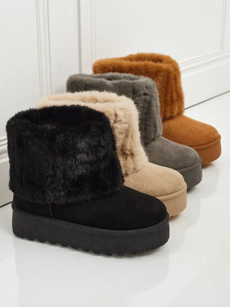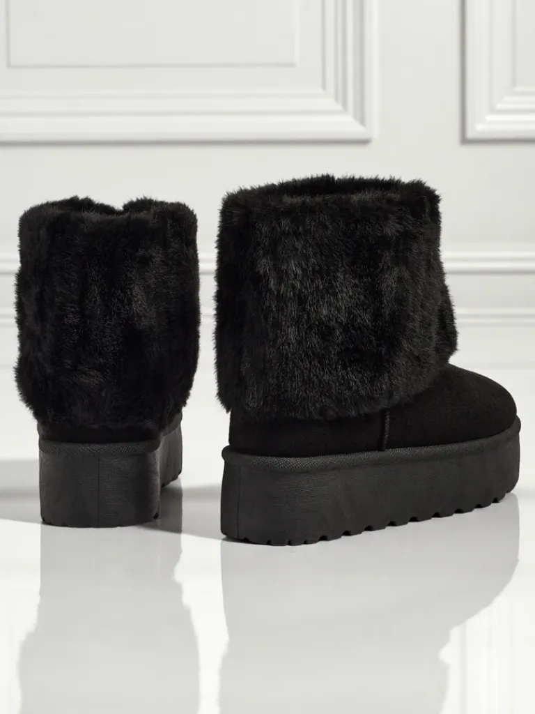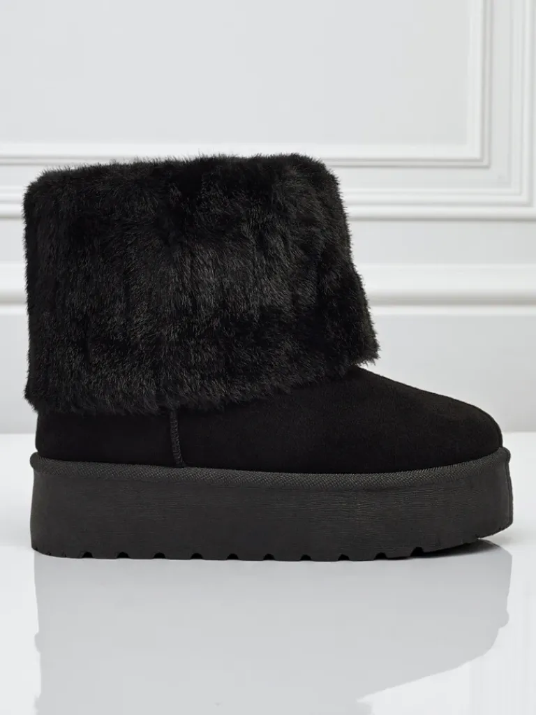 - Świetne damskie zimowe buty typu śniegowce na grubszej podeszwie typu platforma. Cholewka wykonana jest ze skóry ekologicznej zamszowej, środek ocieplony futerkiem. Idealna baza na zimę!