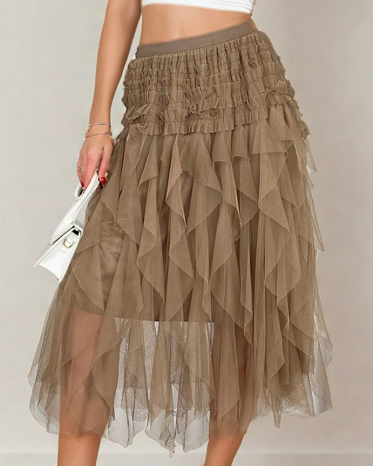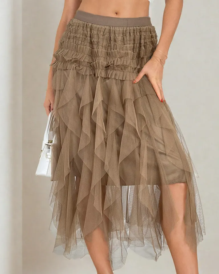 - Ponadczasowa damska dwuwarstwowa spódnica o długości midi. Model posiada elastyczną gumę w pasie, która idealnie podkreśla talię. Ta spódnica to świetny akcent do Twojego codziennego looku!