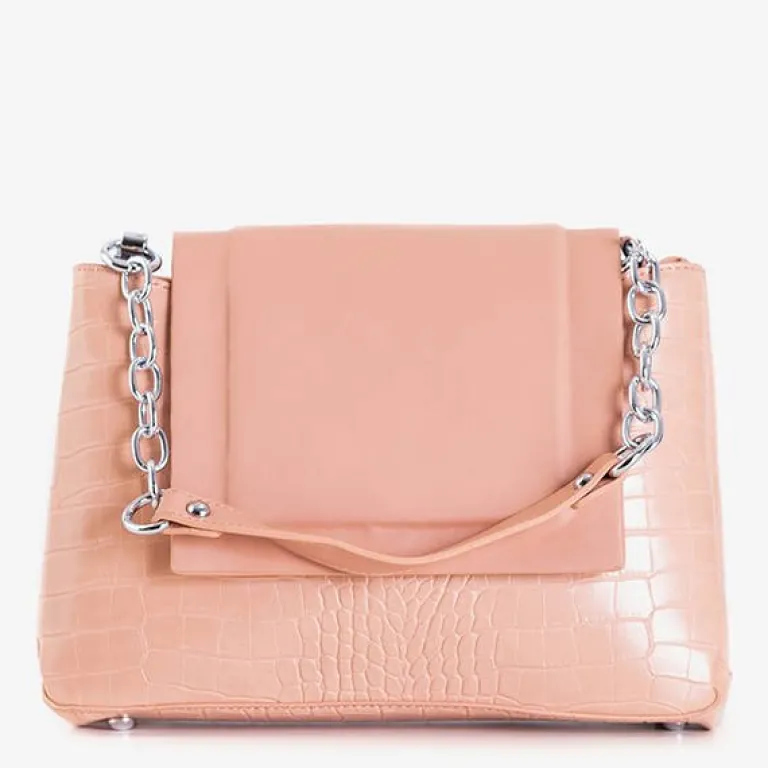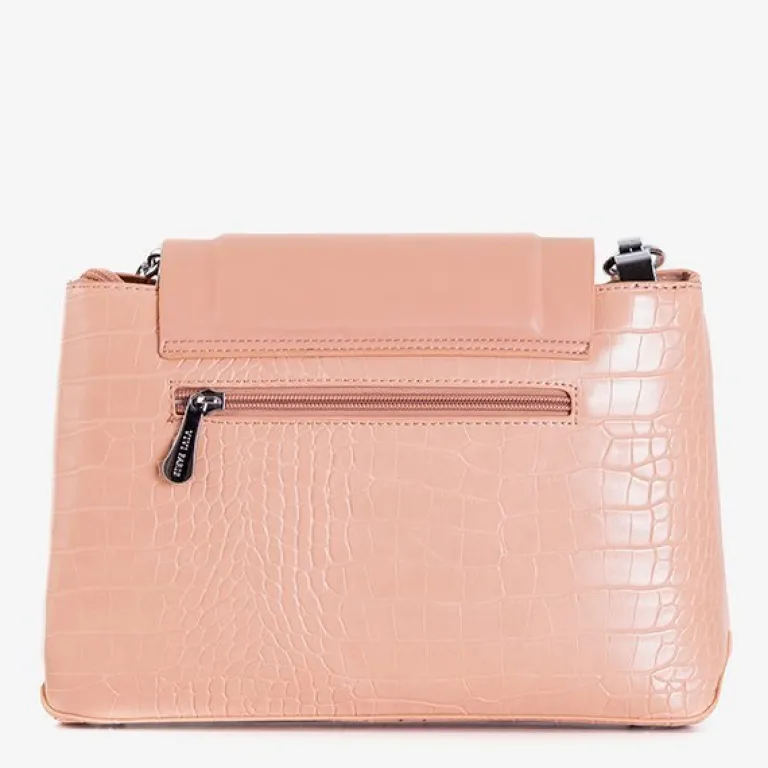 - Elegancka torebka damska na ramię, wykonana z eko-skóry w kolorze nude. Materiał zdobiony zwierzęcym tłoczeniem. Model zapinany na magnes.