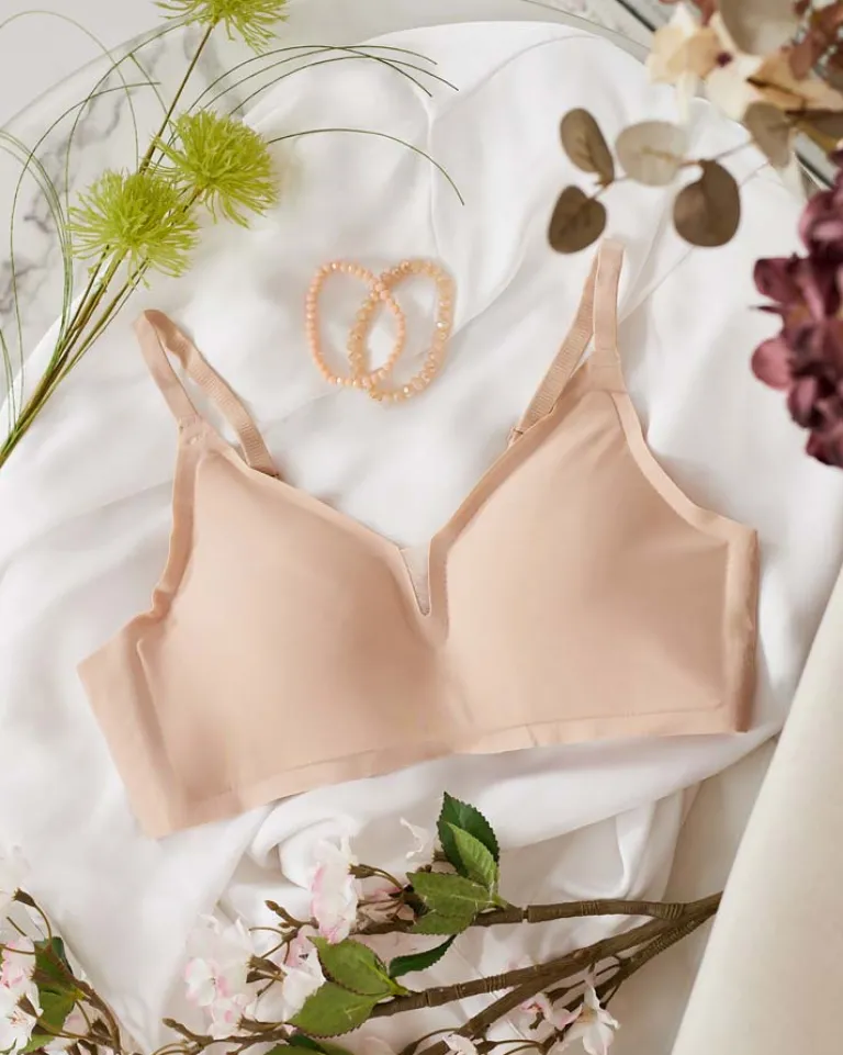 - Bezszwowy damski biustonosz wykonany z elastycznego, przyjemnego materiału. Model z regulowanymi ramiączkami i z zapięciem na haftki. Idealnie dopasuje się do ciała.
