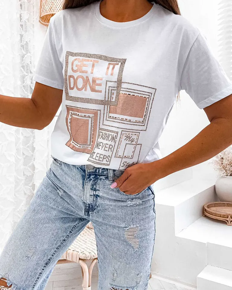 Outlet Damski t-shirt z nadrukiem Bluzki / Koszule / Koszulki