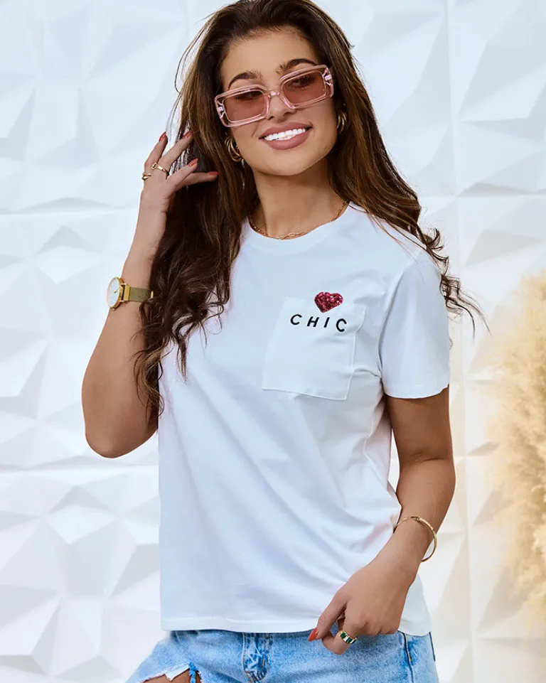 Outlet Damski t-shirt z nadrukiem Bluzki / Koszule / Koszulki
