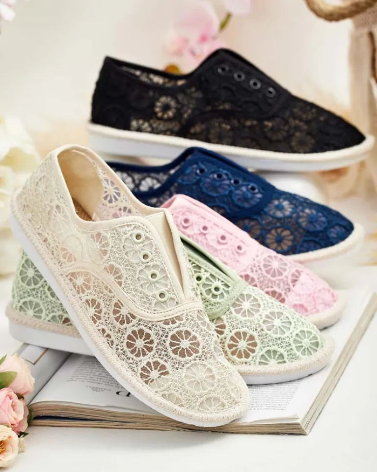 - Ażurowe damskie sportowe tenisówki wykonane z tkaniny. Model na płaskiej podeszwie. Będą świetnie pasowały do codziennych stylizacji!