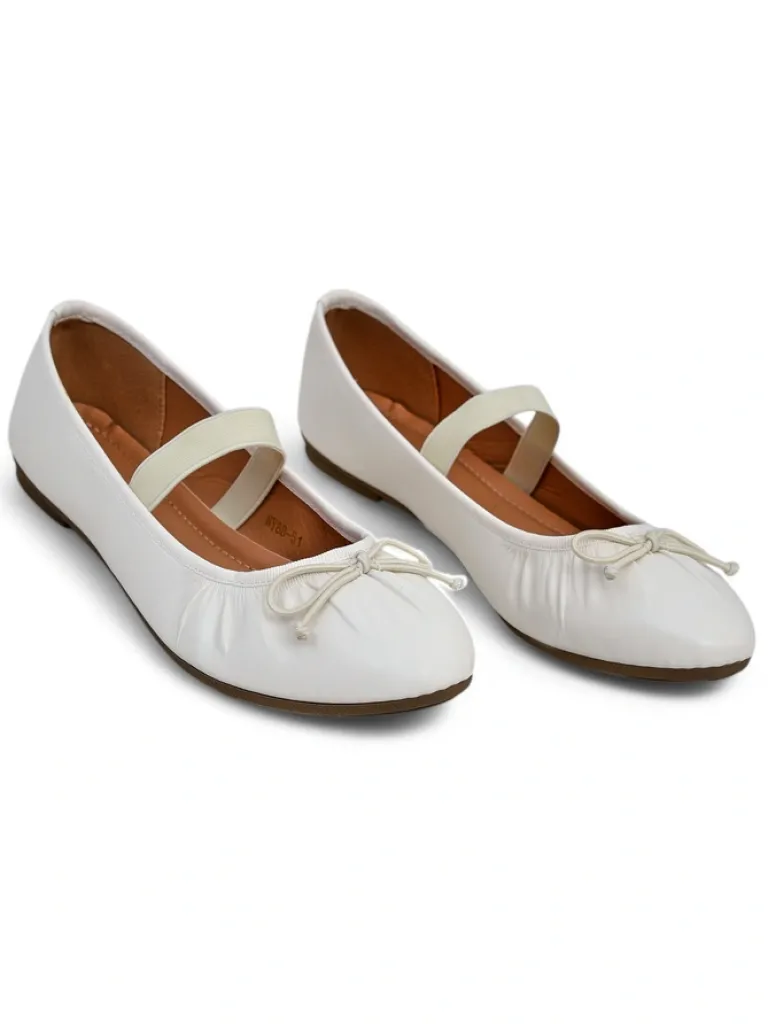 - Wyjątkowe baleriny wykonane z eko skóry z okrągłym noskiem. Cholewka zdobiona subtelną kokardką. Miękka eko-skórzana wkładka dostarczy komfortu, a gumka utrzyma obuwie idelnie na stopie. Idealnie się sprawdzą do eleganckich i modnych stylizacji!
