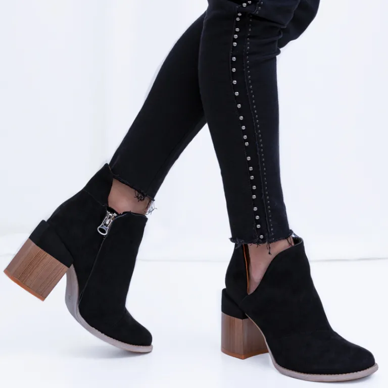 - Wyjątkowe damskie botki z wycięciami na stabilnym słupku. Cholewka wykonana z eko-zamszu, zaś wkładka pokryta skórą ekologiczną. Model zapinany na suwak po wewnętrznej stronie. Idealnie wkomponują się do każdej codziennej stylizacji!