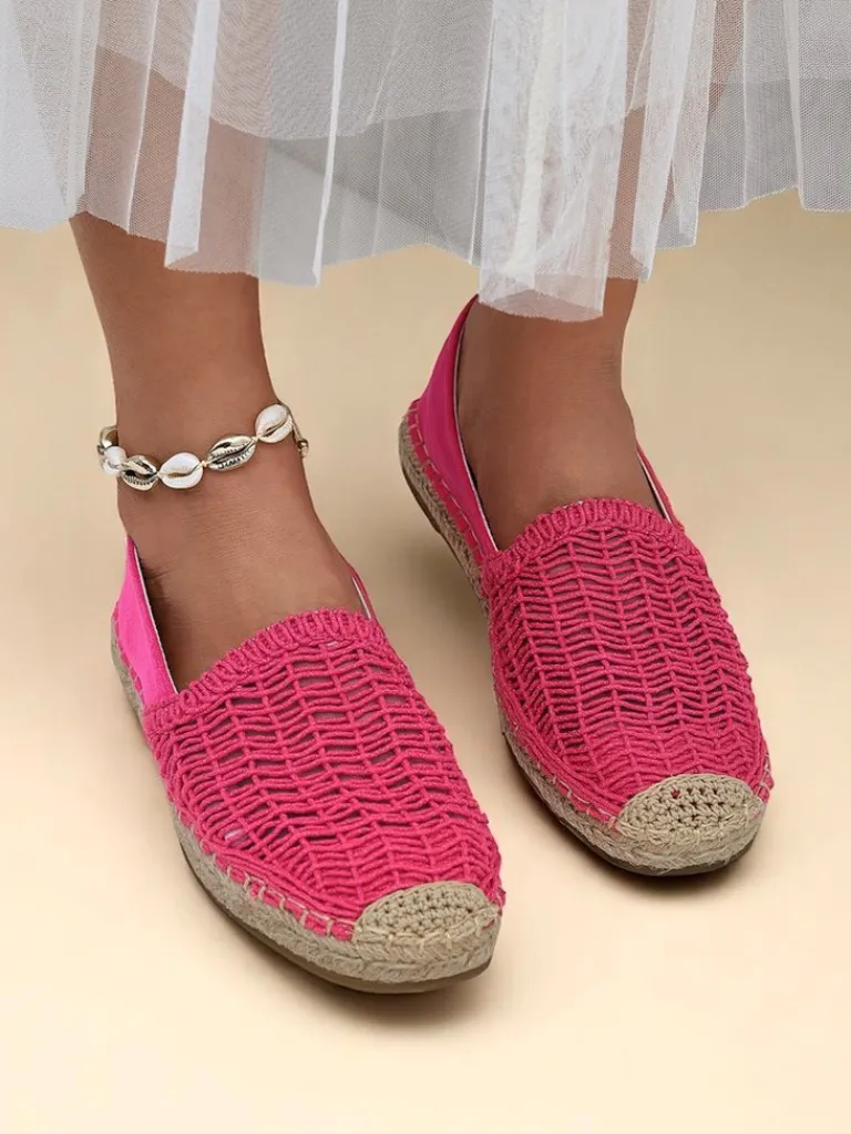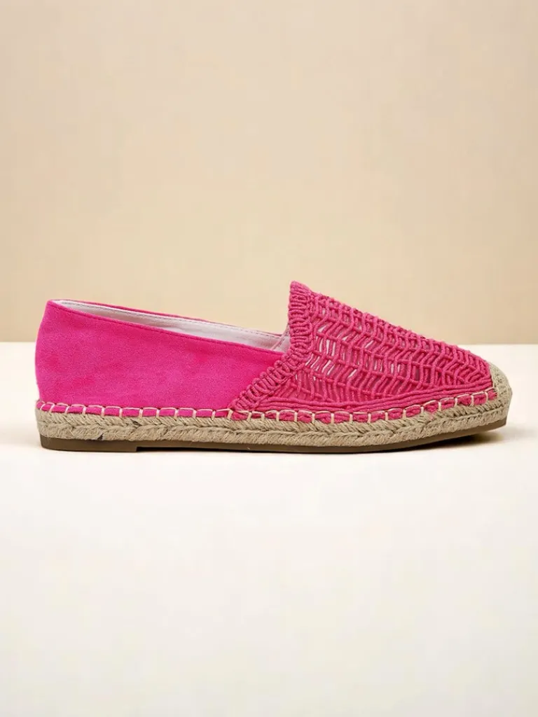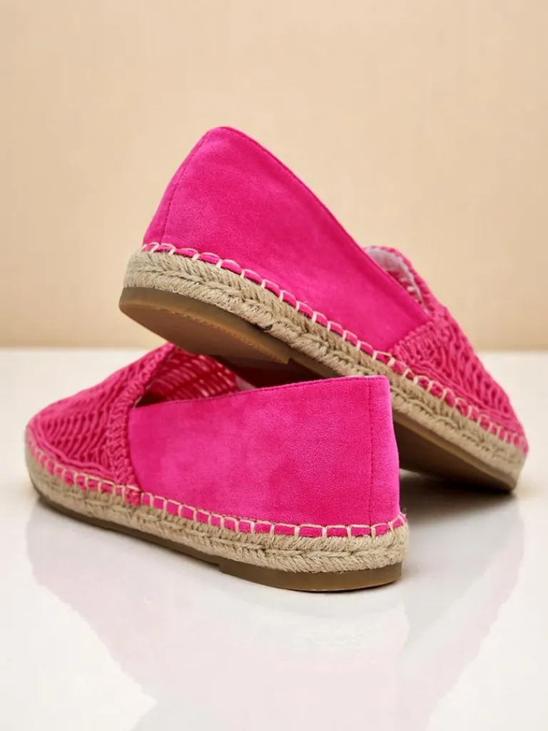 - Lekkie espadryle z eko zamszu i plecioną tkaniną na nosku. Jutowy sznurek na podeszwie dodaje uroku. Wygodne i stylowe – perfekcyjne na letnie spacery.