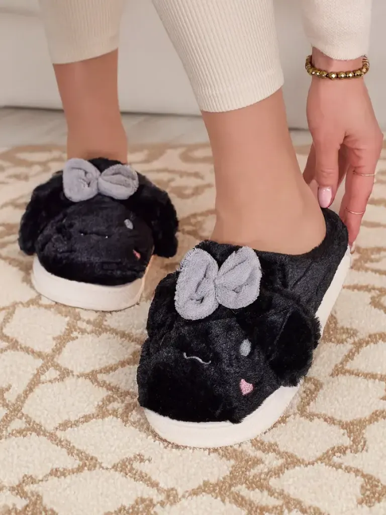 - Rewelacyjne damskie kapcie na płaskiej podeszwie, zdobione kokardką. Model wykonany z materiału imitującego futerko. Świetna propozycja dla domowych outfitów!
