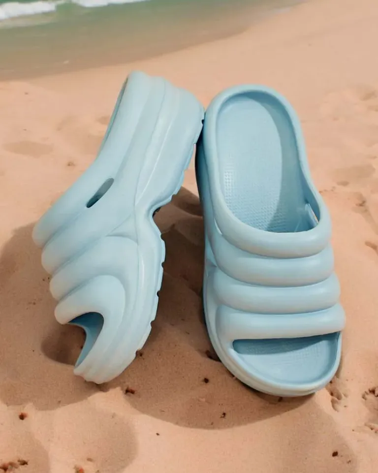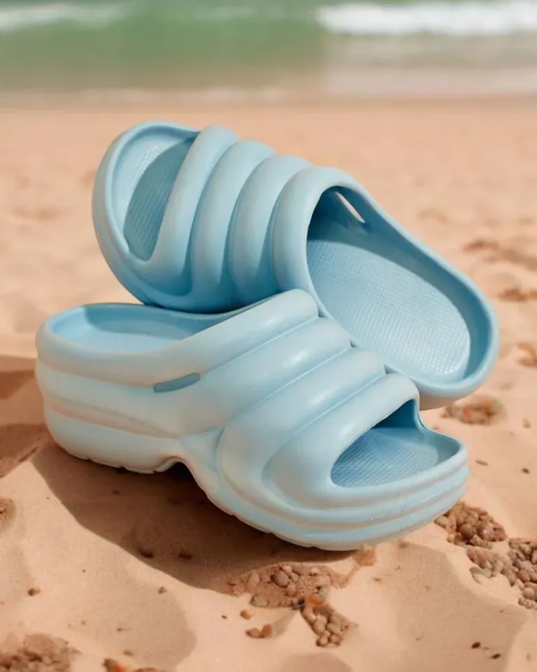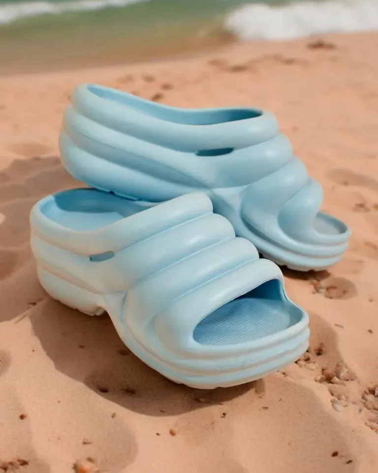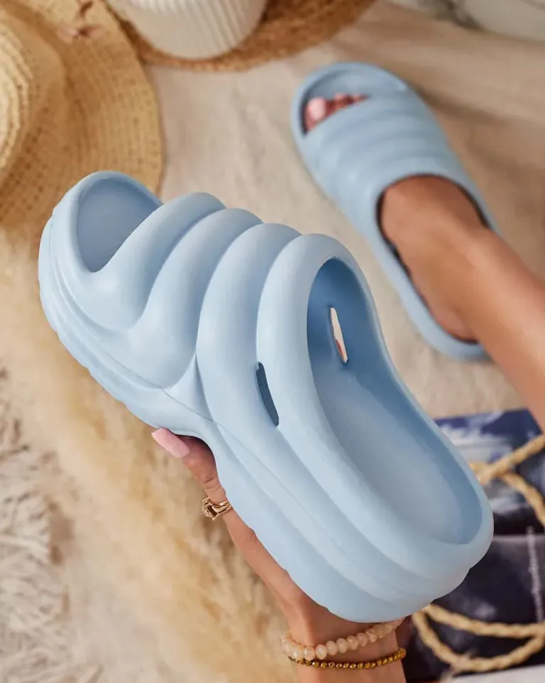 - Piękne damskie gumowe klapki na grubszej podeszwie. Model posiada całościowo asymetryczne kształty co dodaje im stylu. Idealny wybór do domu, ogrodu jak i na wakacje!