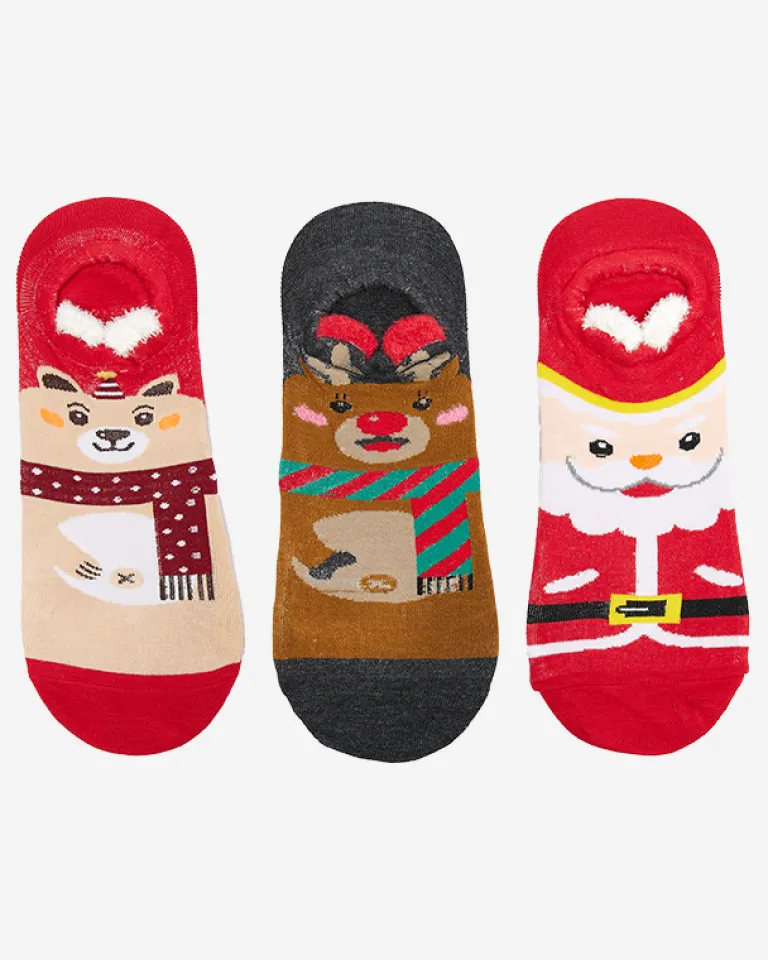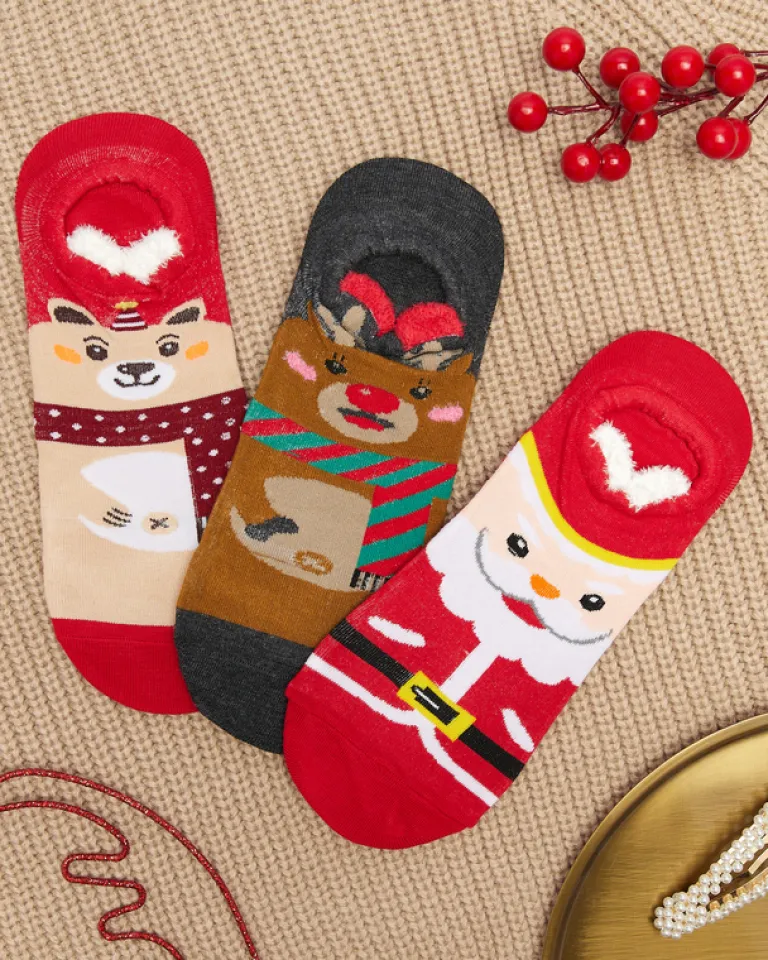 - Kolorowy damski świąteczny mix 3 par skarpet, wykonany z materiału bawełnianego. Model z uroczymi motywami ze zwierzętami i mikołajkami – to idealny pomysł na prezent na gwiazdkę!