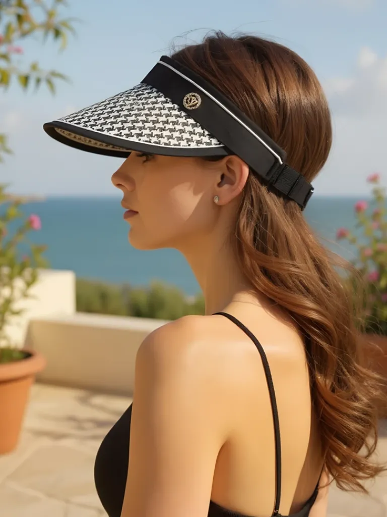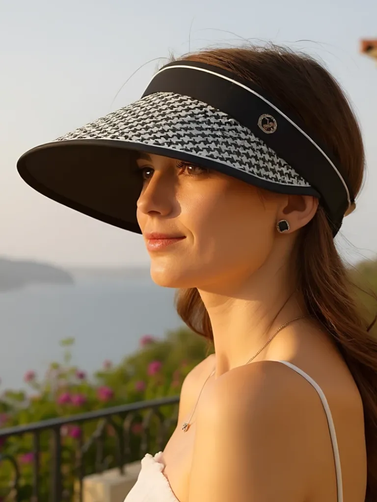 - Przeciwsłoneczny daszek z modnym printem, wykonany z wysokiej jakości tkaniny. Z regulacją obwodu dla idealnego dopasowania. Stylowy i funkcjonalny na słoneczne dni!