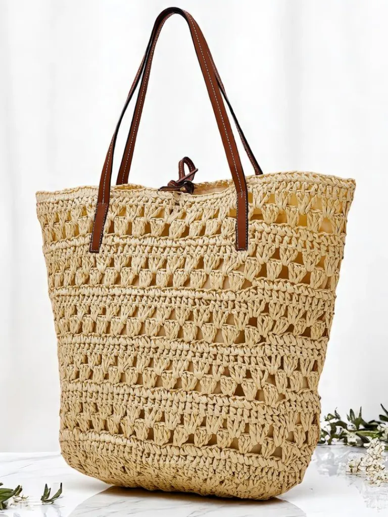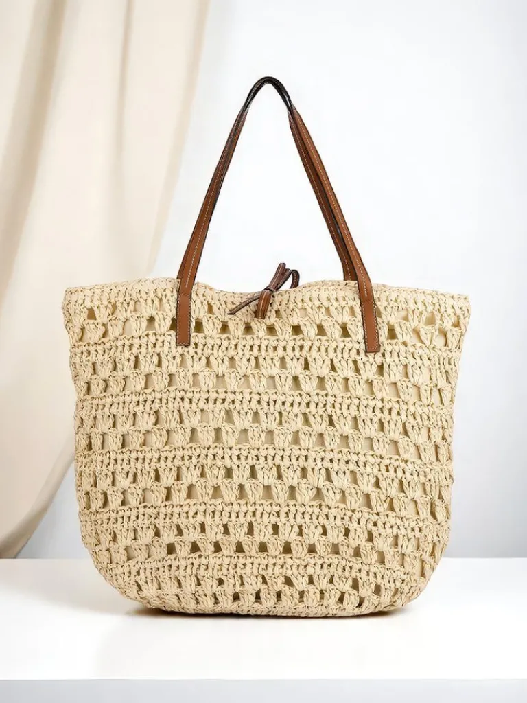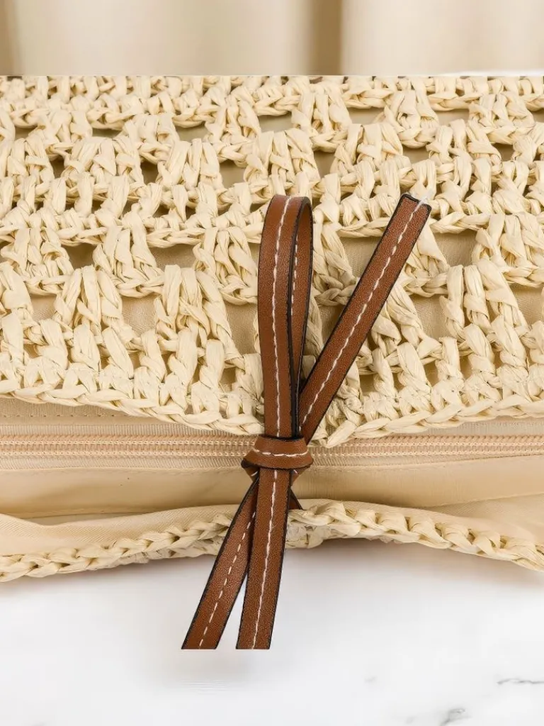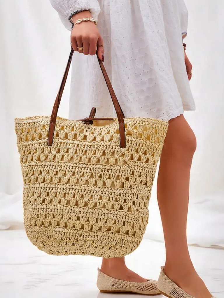 - Duża, pleciona torebka damska ze słomy. 1 komora, kieszonka, zapięcie na zamek. Lekka, pojemna i stylowa – idealna na lato, plażę i codzienne wyjścia!