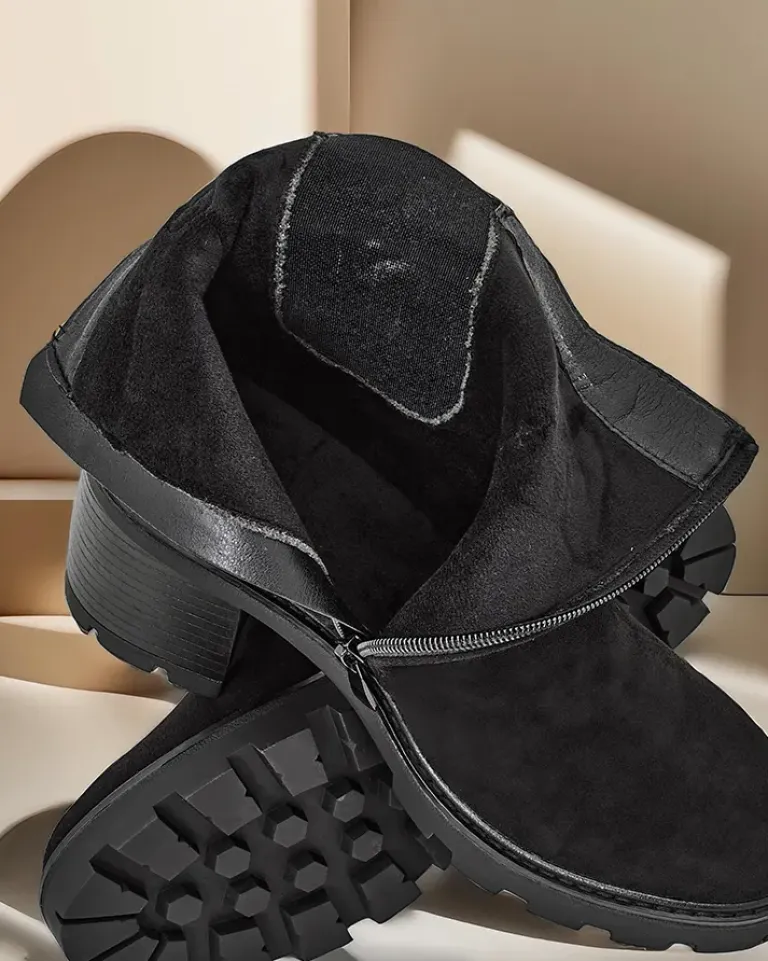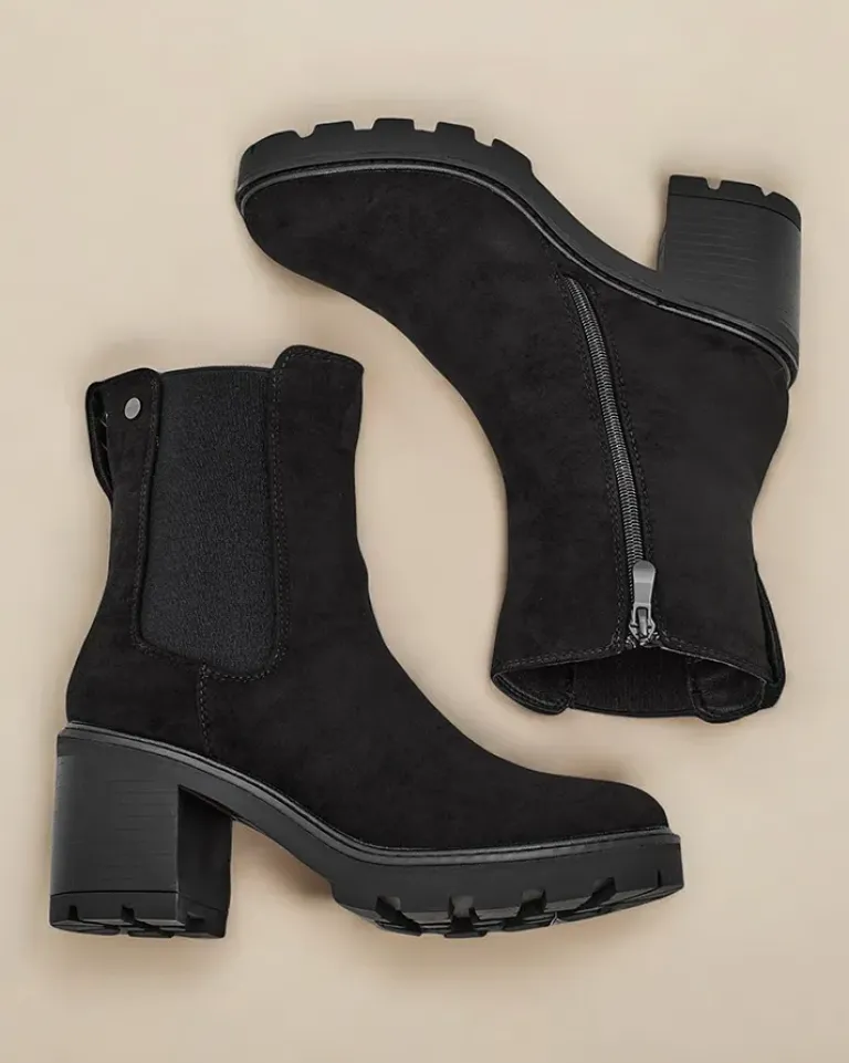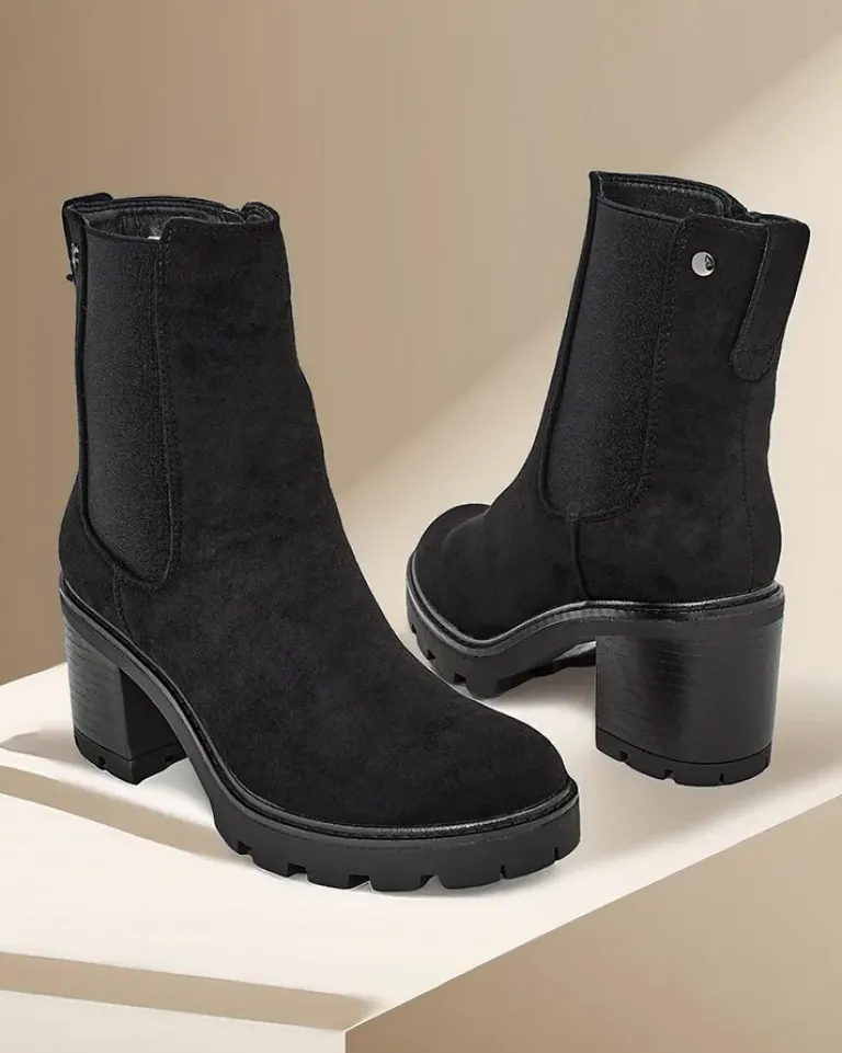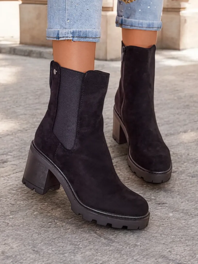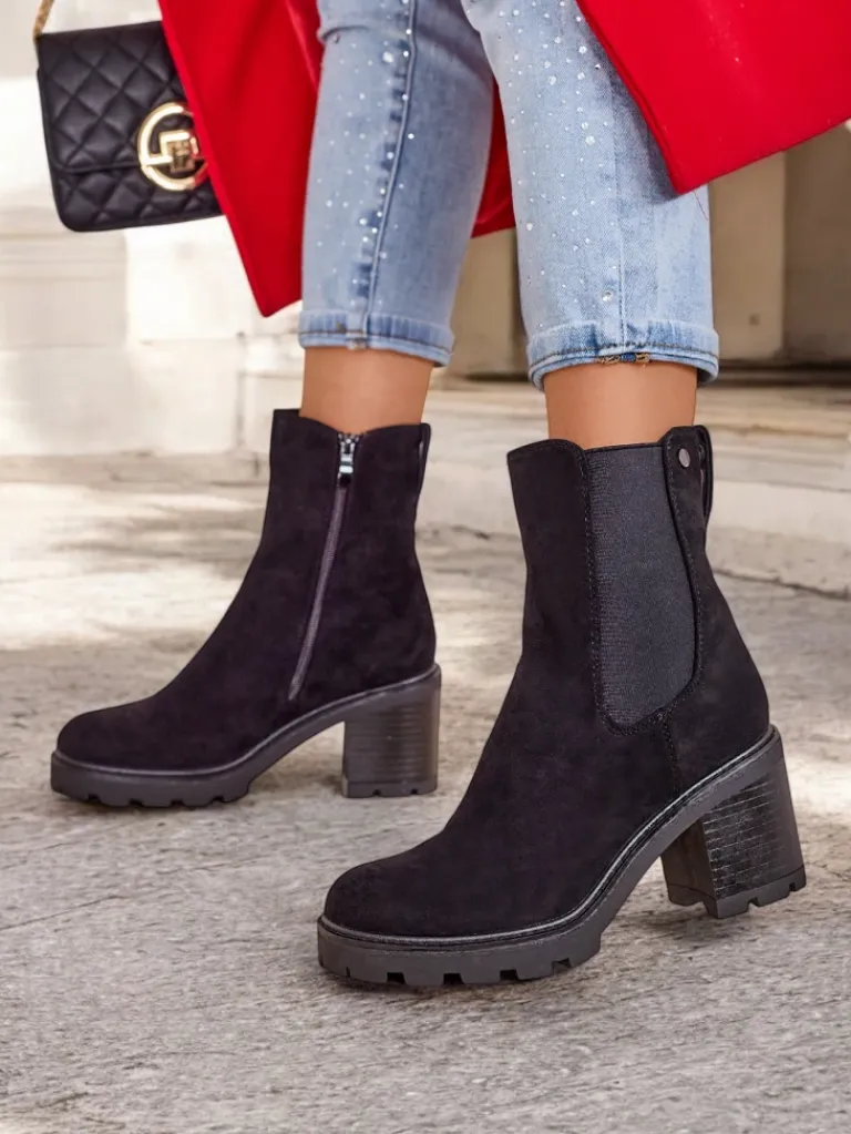 - Stylowe damskie botki to idealne rozwiązanie na chłodniejsze dni. Eko zamszowa cholewka jest zapinana na suwak, a w środku znajduje się futerko. Model na słupku i z okrągłym noskiem. Super dodatek do Twoich casualowych outfitów!
