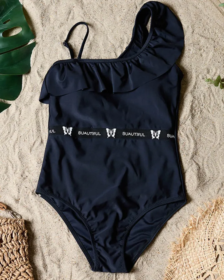 Outlet jednoczęściowy kostium kąpielowy damski z falbanką – Bielizna Stroje Kąpielowe