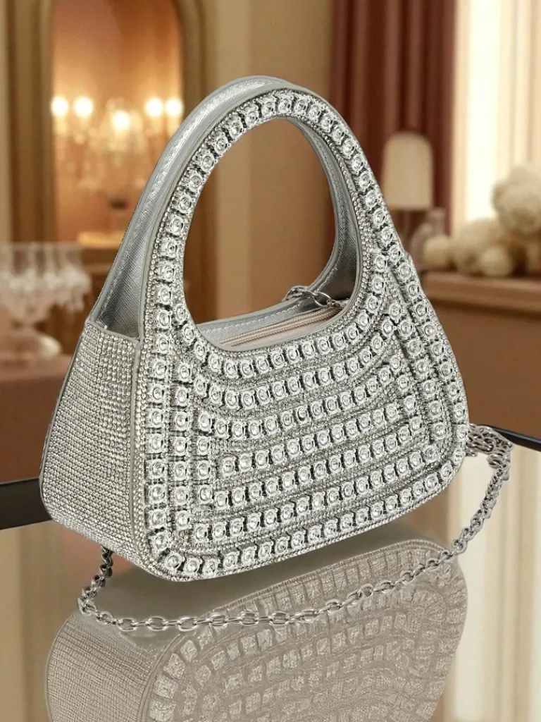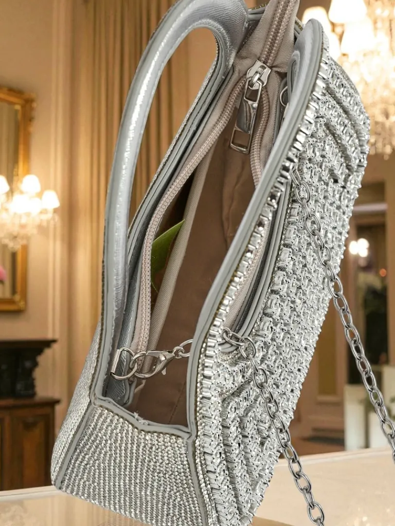 - Elegancka kopertówka z połyskującymi cyrkoniami, 1 komora, zamykana na zamek. Stylowe uszy i ozdobny łańcuszek dodają szyku. Idealna na wyjątkowe okazje – olśniewaj z klasą!