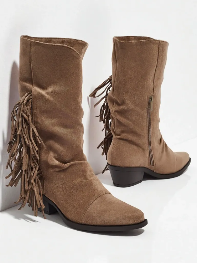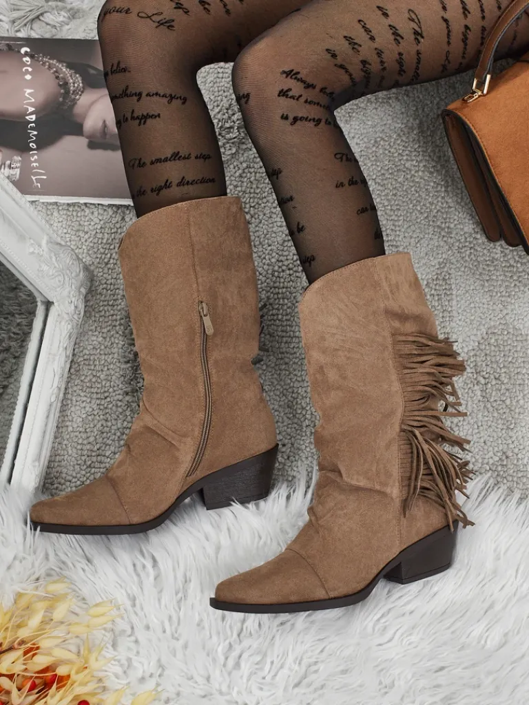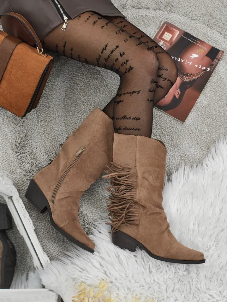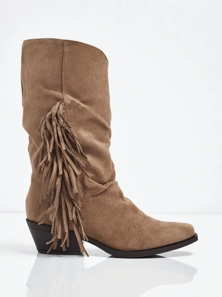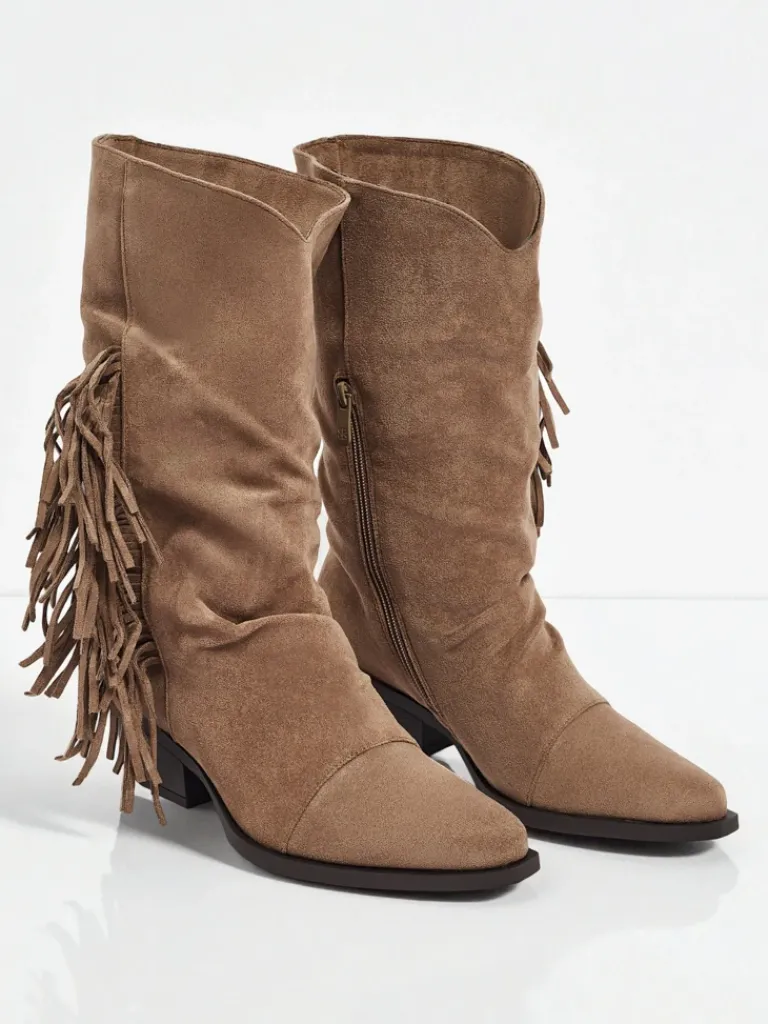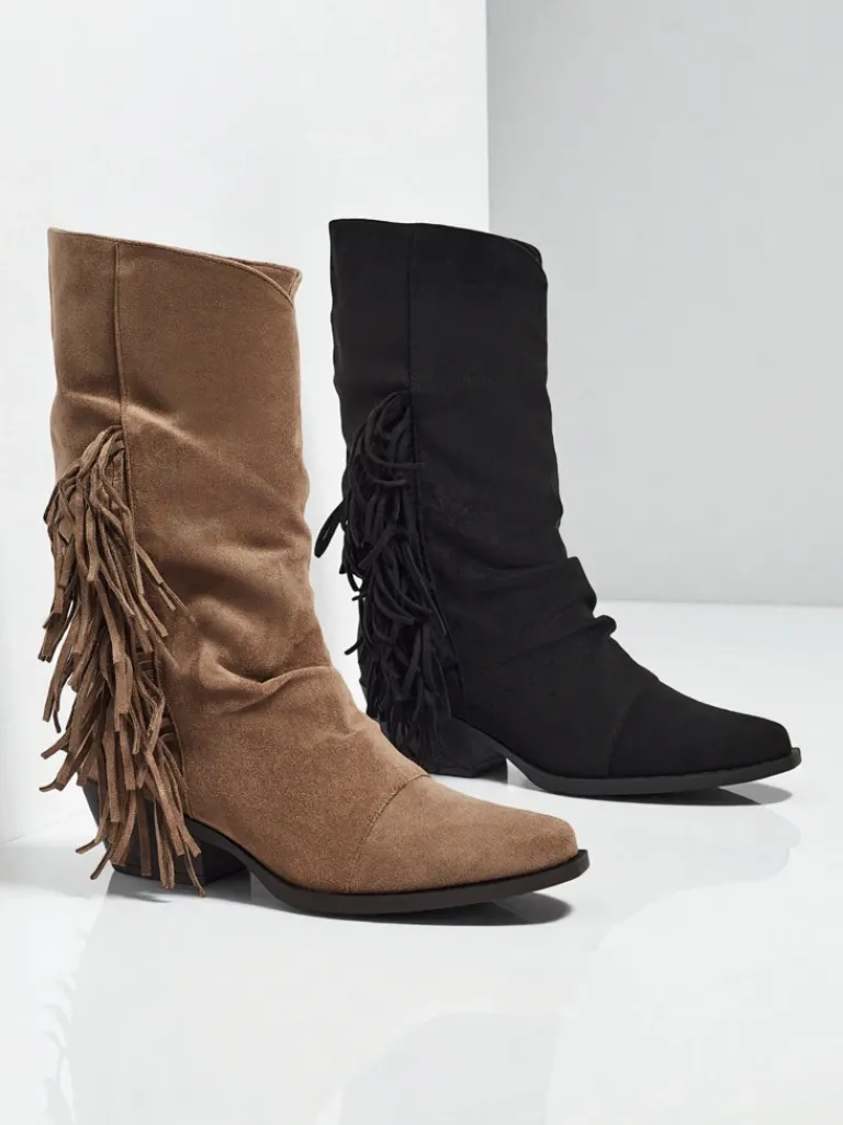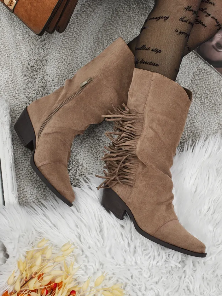 Outlet Kowbojki damskie na obcasie z frędzelkami Selva Botki Z Delikatnym Ociepleniem|Kowbojki