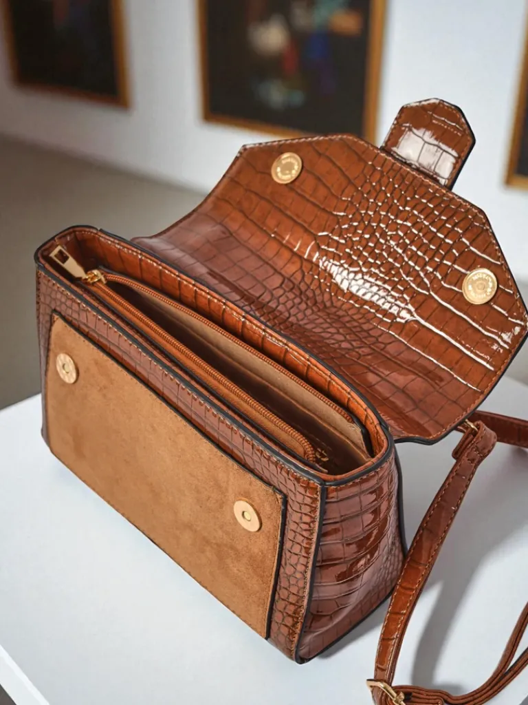 - Lakierowana torebka z eko skóry z eleganckim tłoczeniem. 1 pojemna komora i odpinany, regulowany pasek zapewniają wygodę noszenia. Stylowy wybór na co dzień i na wyjątkowe okazje. Klasa, która przyciąga spojrzenia.