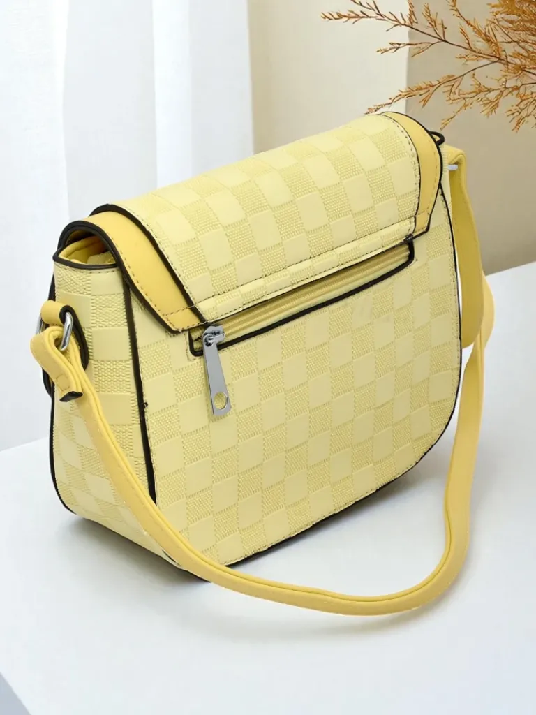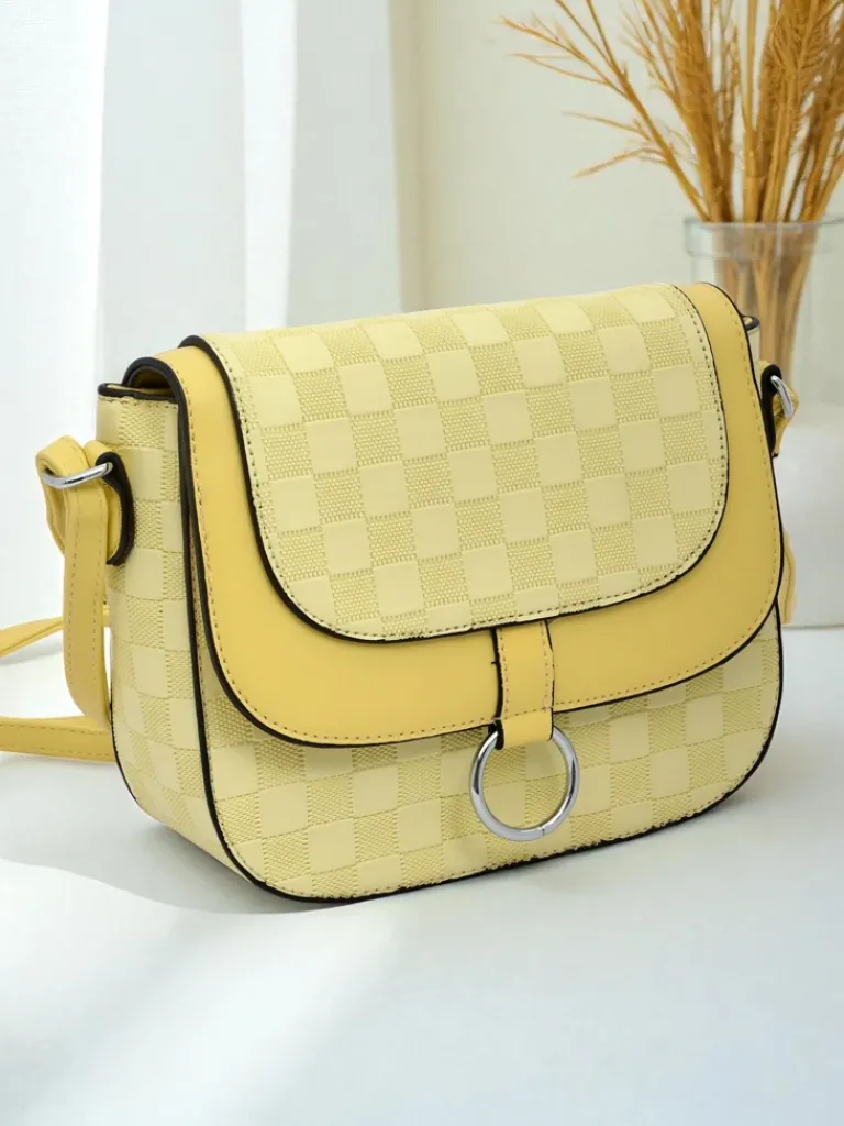 - Mała torebka damska z eko skóry w modną kratkę. Zapięcie na zamek, regulowany pasek i jedna komora zapewniają wygodę i styl na co dzień. Idealna na telefon, portfel i drobiazgi.