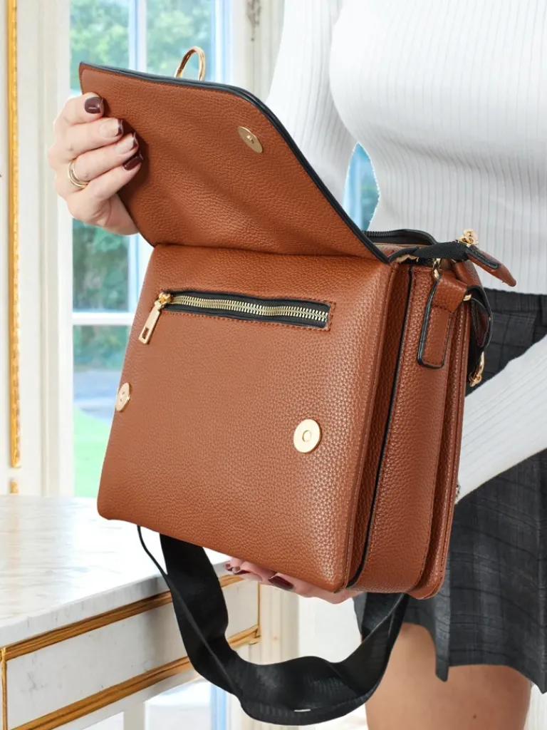 - Mała torebka wykonana z połączenia eko skóry. 3 komory, 4 kieszonki, zamek oraz regulowany pasek. Styl i funkcjonalność w perfekcyjnym wydaniu.