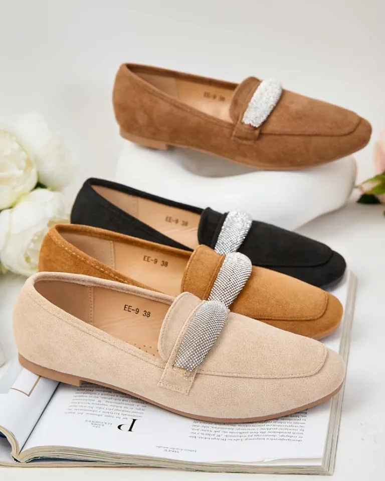 - Klasyczne damskie mokasyny na płaskiej podeszwie. Model jest wykonany ze skóry ekologicznej zamszowej i wkładki ze skóry ekologicznej. Idealna baza na co dzień!