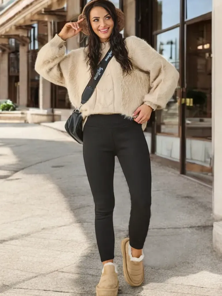 - Damskie ocieplane polarem legginsy z gumą w pasie. Model ze średnim stanem, wykonany z rozciągliwego materiału. Świetny wybór do pracy i nie tylko! UWAGA: Dokładność pomiaru (+/-) 1 cm.