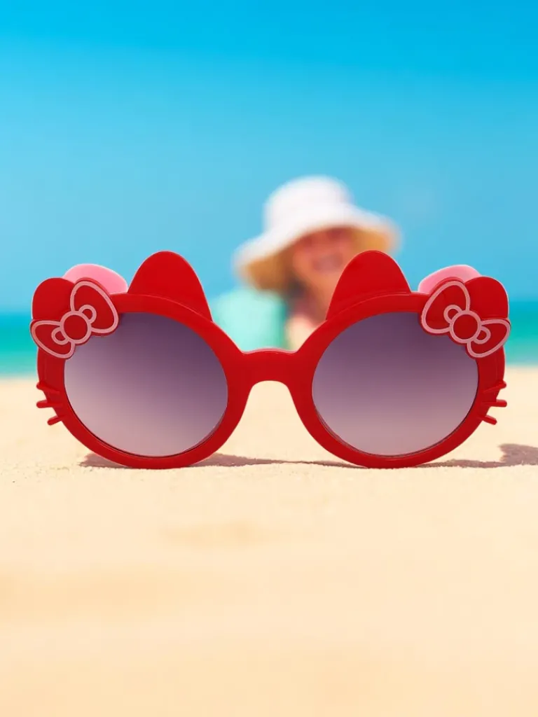 - Urocze okulary przeciwsłoneczne Kitty Shades w stylu Hello Kitty to idealny wybór dla małych fanek stylu kawaii! Z kokardką i kocimi uszkami, zapewniają ochronę UV i bajkowy wygląd na każdy słoneczny dzień.