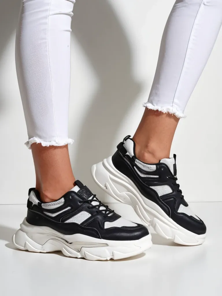 - Sneakersy damskie na płaskiej podeszwie – perfekcyjne połączenie stylu i komfortu. Obuwie wykonane ze skóry ekologicznej. Model sznurowany, posiada tkaninową wkładkę. Idealne dla aktywnych osób!