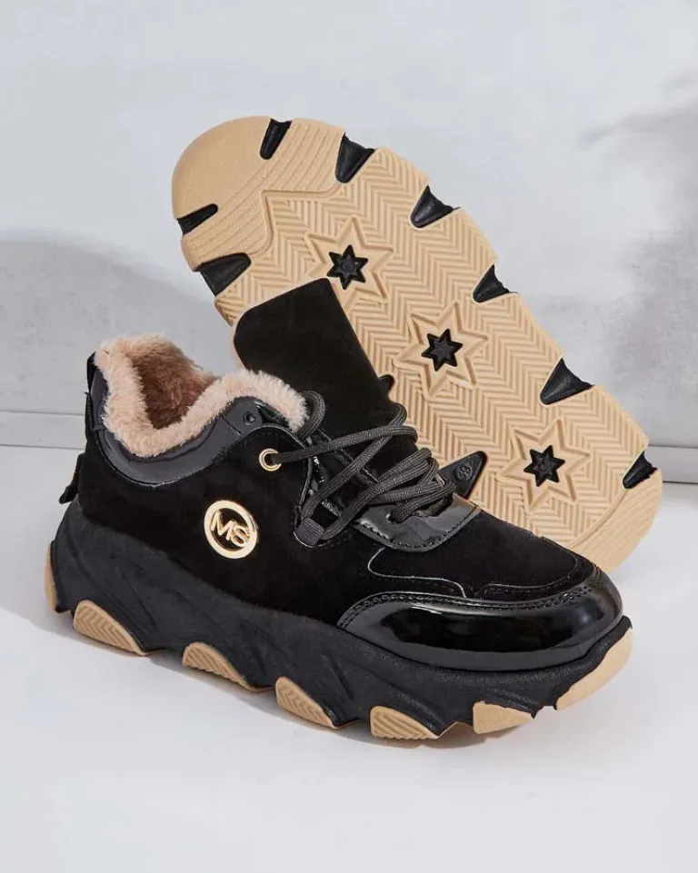 - Damskie ocieplane buty sportowe typu sneakersy na grubszej podeszwie. Sznurowana cholewka wykonana ze skóry ekologicznej zamszowej. W środku miękkie futerko. Super dodatek do Twoich zimowych outfitów w stylu casual!
