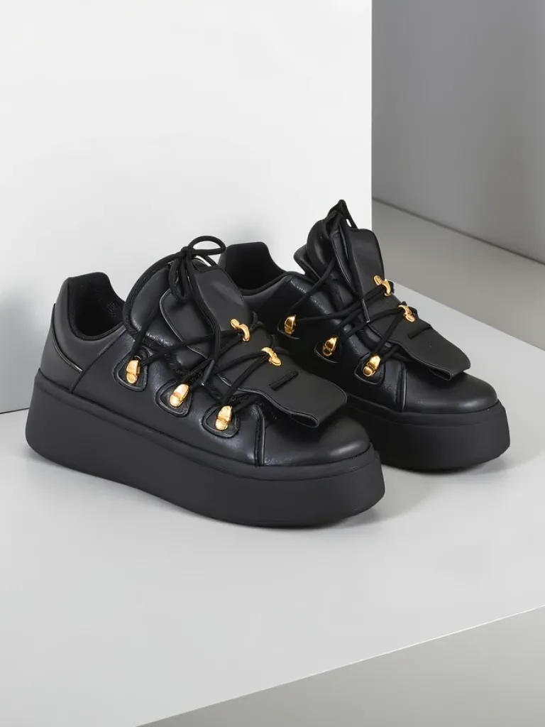 - Sportowe sneakersy damskie na grubszej podeszwie. Cholewka sznurowana, wykonana ze skóry ekologicznej. Wnętrze wykonane z przyjemnej tkaniny. Model posiada ozdobny język. Idealne na co dzień!