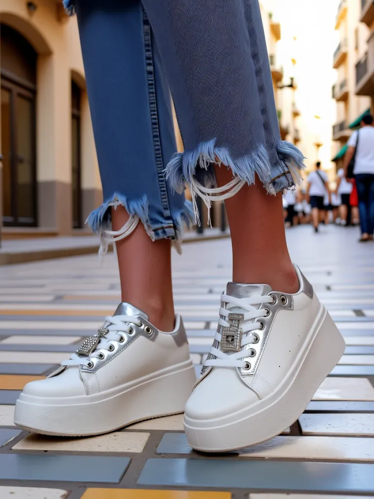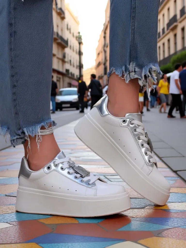 - Sneakersy damskie na płaskiej podeszwie – perfekcyjne połączenie stylu i komfortu. Obuwie wykonane ze skóry ekologicznej. Model sznurowany, posiada tkaninową wkładkę. Idealne dla aktywnych osób!