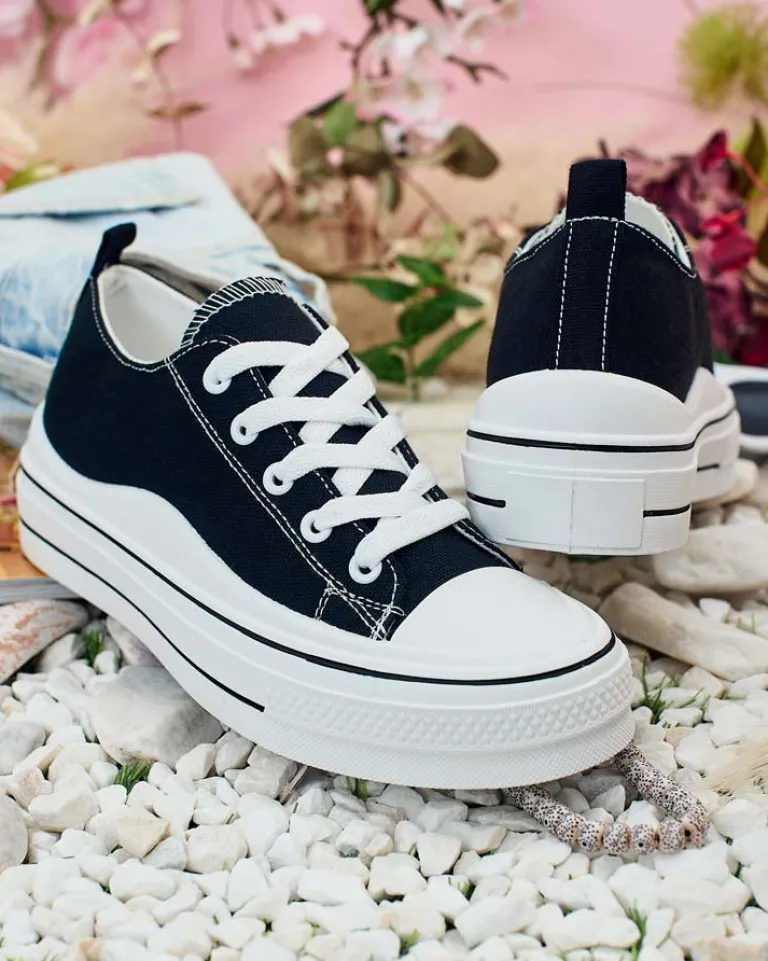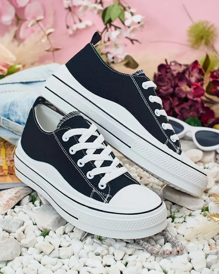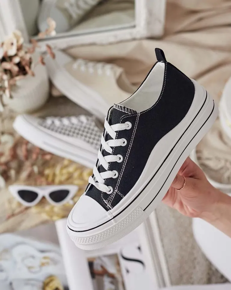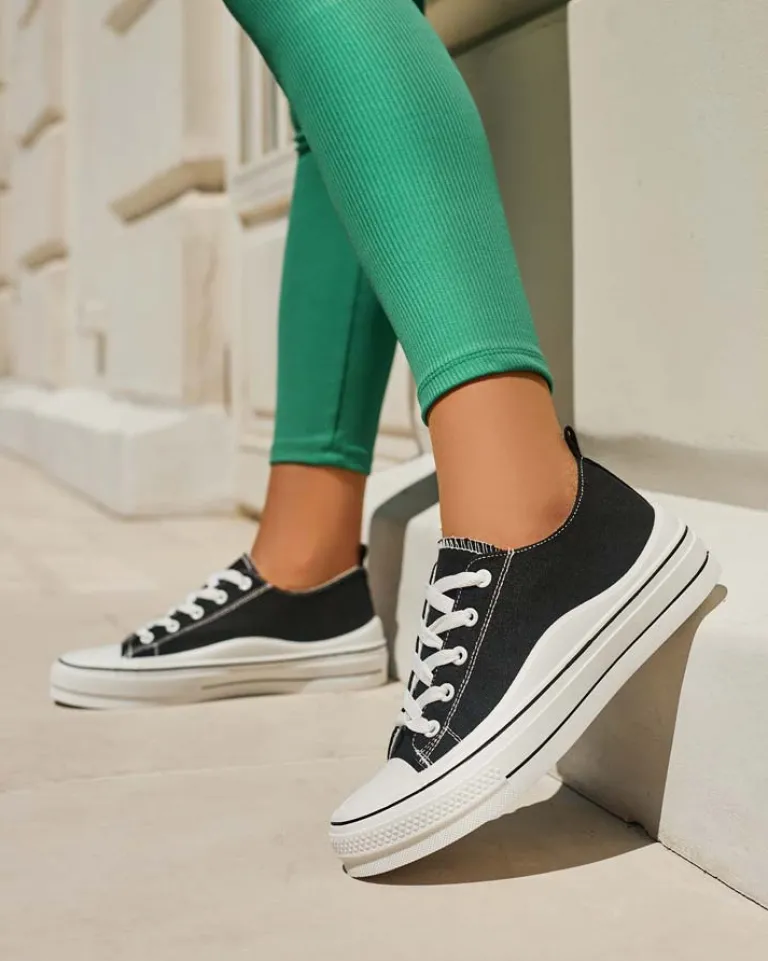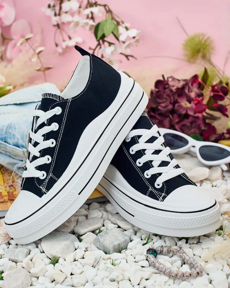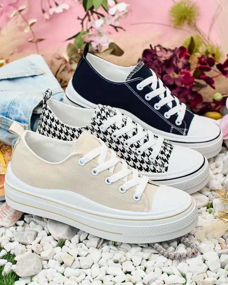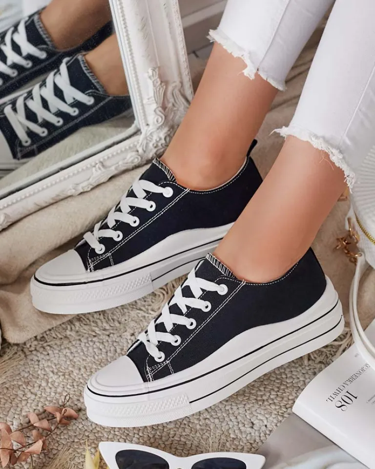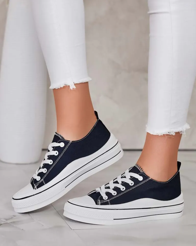 - Stylowe sportowe trampki damskie wykonane z materiału tkaninowego. Model na wygodnej platformie. Cholewka jest sznurowana. Świetne do tworzenia casualowych outfitów!