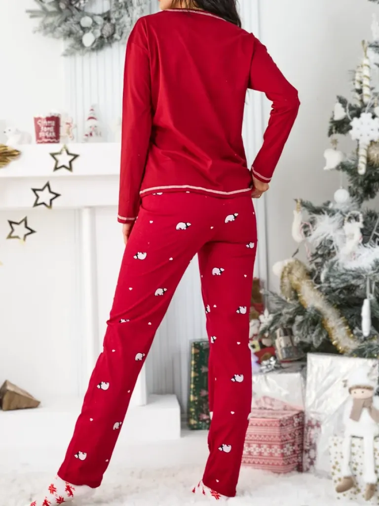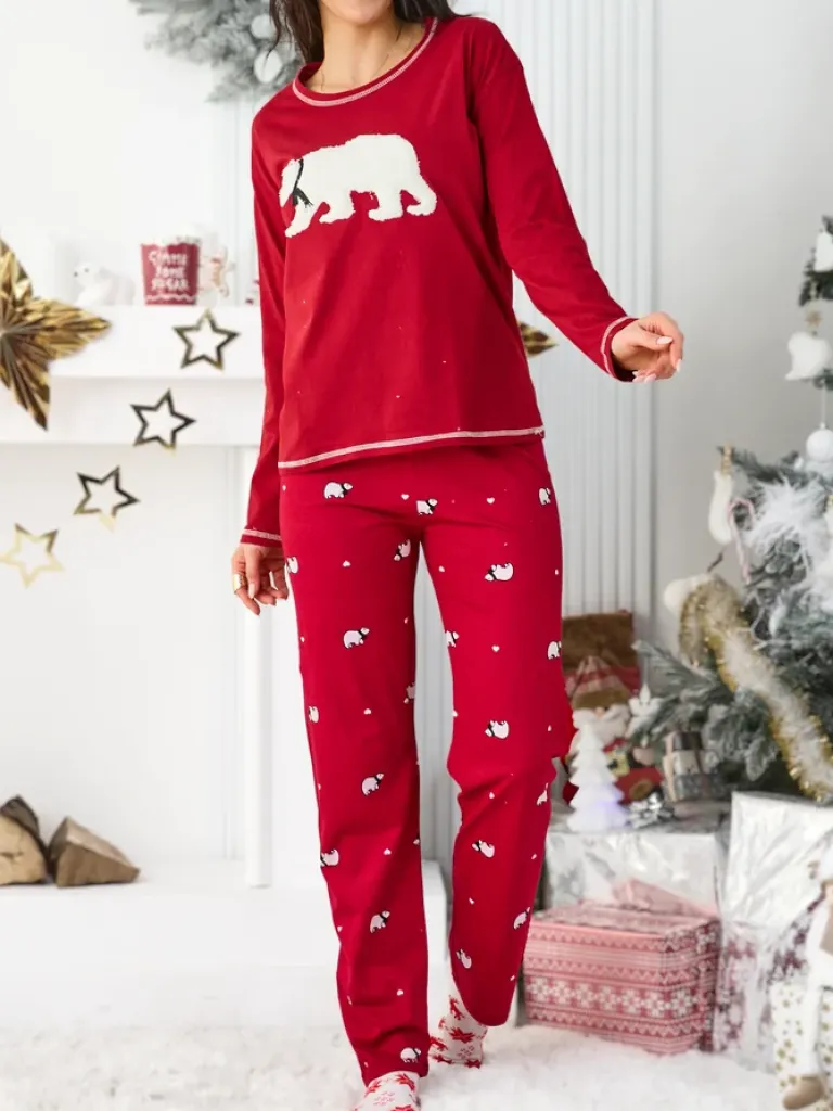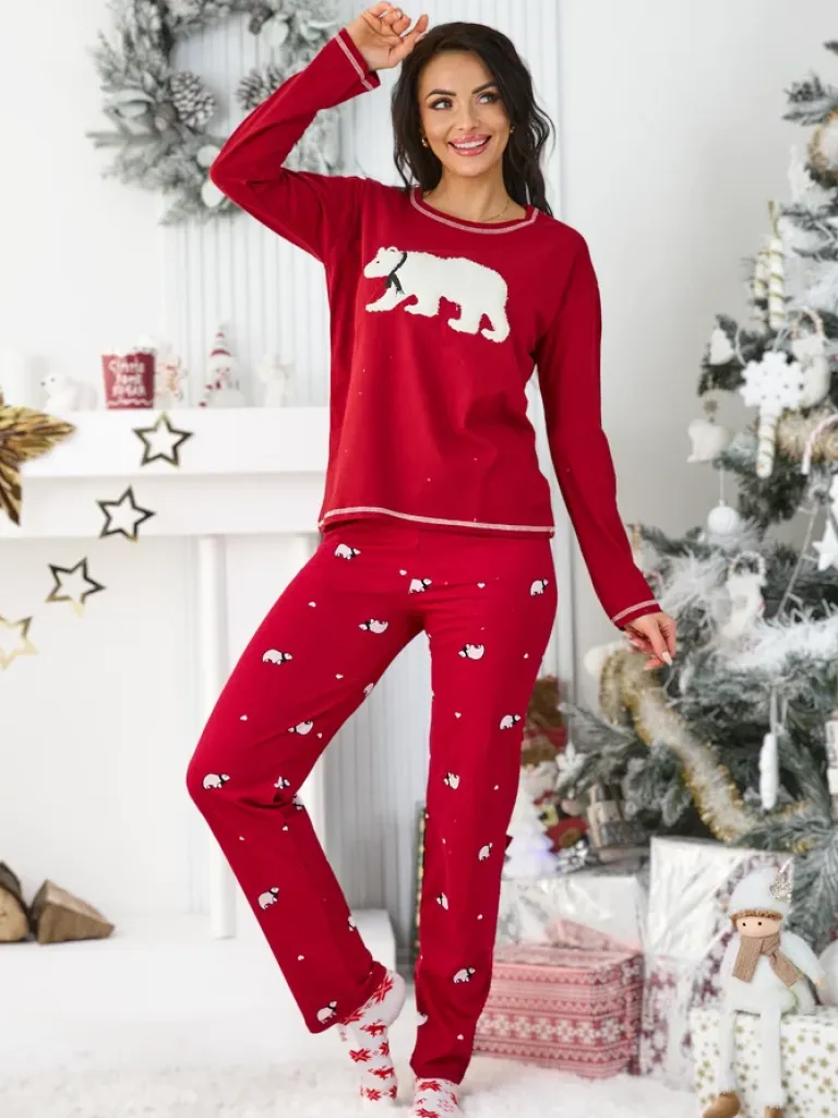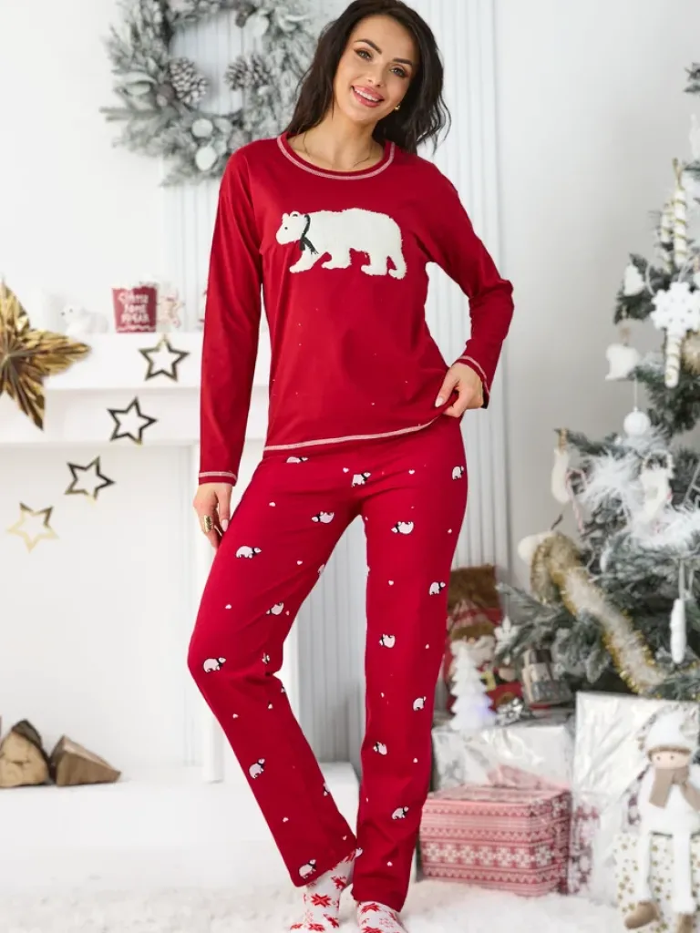 Outlet Świąteczna bawełniana piżama damska z misiem polarnym Piżamy