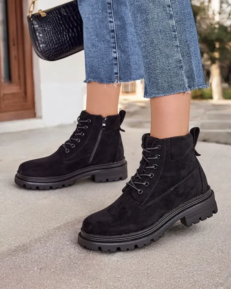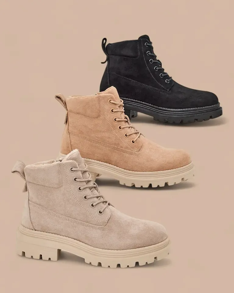 - Delikatnie ocieplane trapery damskie, wykonane z eko skóry zamszowej. Cholewka wiązana i zapinana na zamek. W środku ocieplenie w formie futerka. Konkretne buty na złą pogodę!