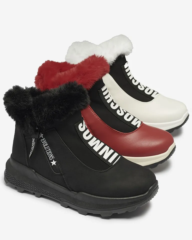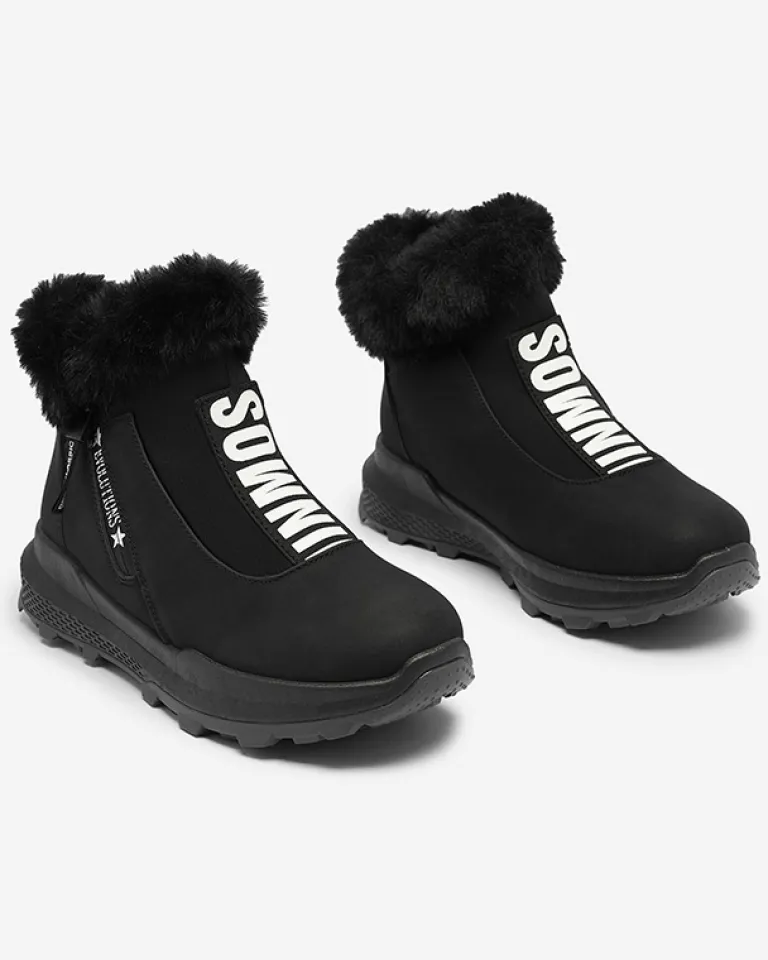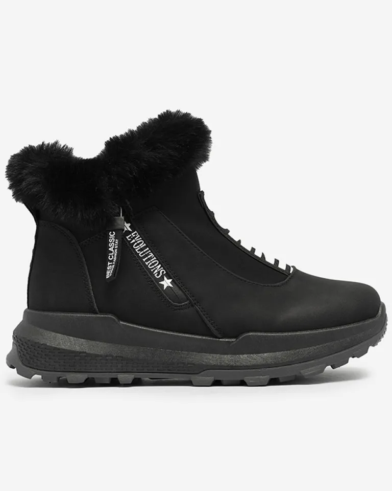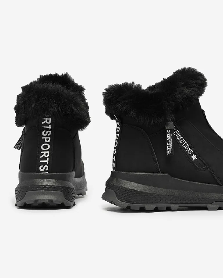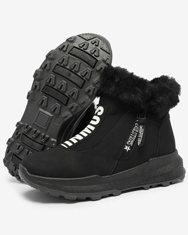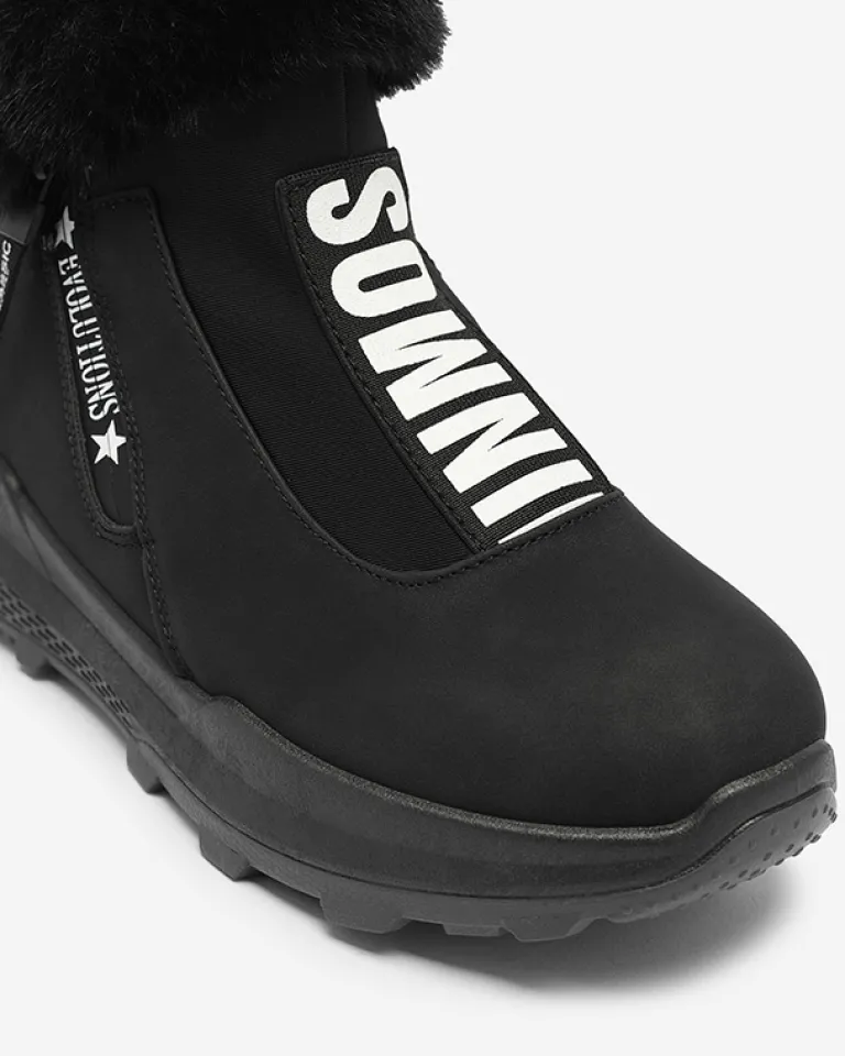 - Damskie botki wykonane ze skóry ekologicznej, środek jest ocieplany miękkim futerkiem. Z przodu cholewki elastyczna wstawka z ozdobnym napisem, obuwie zapinane na suwak. CZARNE BUTY BOTKI DAMSKIE OCIEPLANE SCHERR