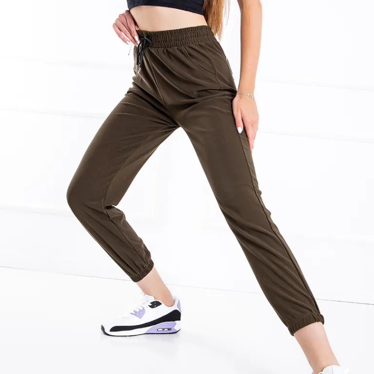 - Wygodne spodnie dresowe damskie z elastyczną gumą w pasie oraz ściągaczami na nogawkach. Wysoki stan oraz troczki, dodatkowo ciekawy napis z tyłu. Stylowa i sportowa odzież!