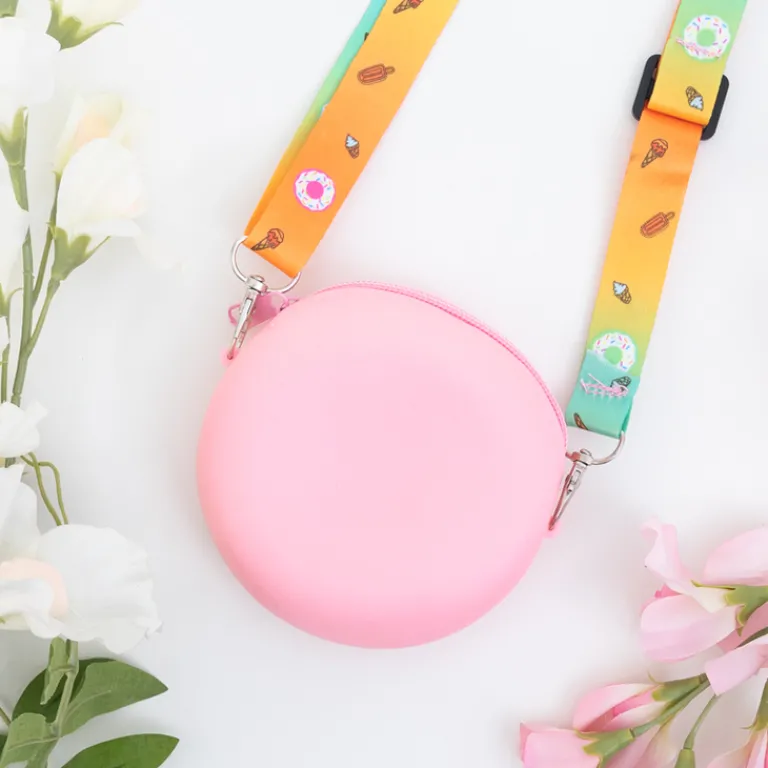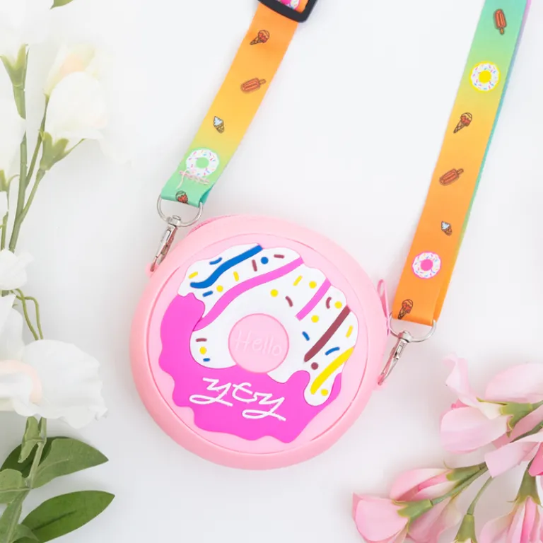 - Prześliczna torebka dla dziewczynek w kształcie pączka. Model zapinany na zamek błyskawiczny. W środku jedna komora bez dodatkowych kieszeni. W zestawie długi paseczek przymocowany na karabińczyk i z możliwością regulacji.