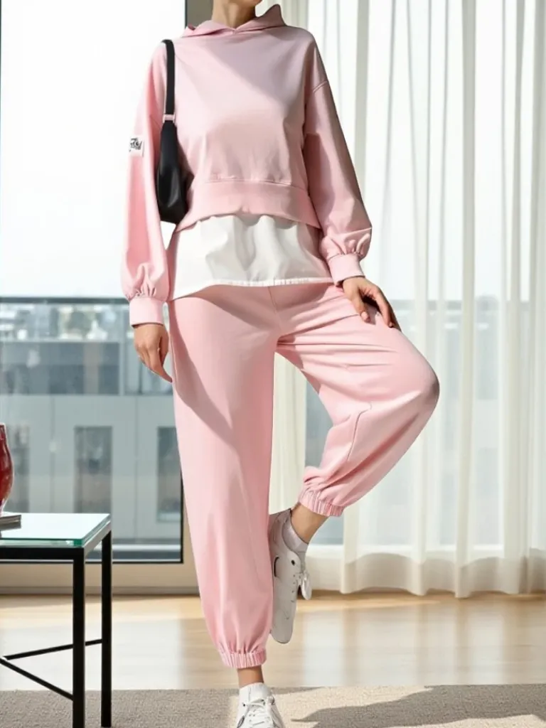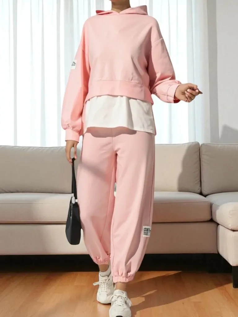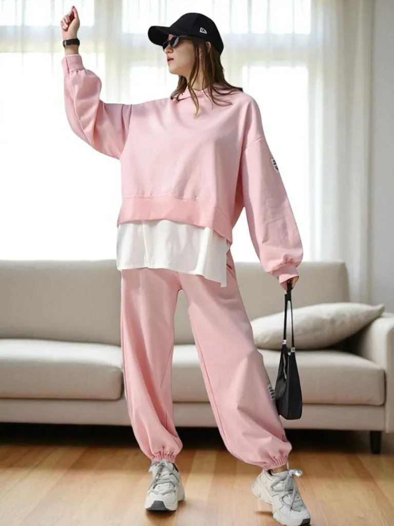 - Damski komplet casualowy wykonany z przyjemnej tkaniny. Bluza zakładana przez głowę, posiada długie rękawy i wstawkę a’la koszula.. Spodnie z 2 wsuwanymi kieszeniami, gumą w pasie i nogawkach. Idealny dla tych, którzy cenią komfort.
