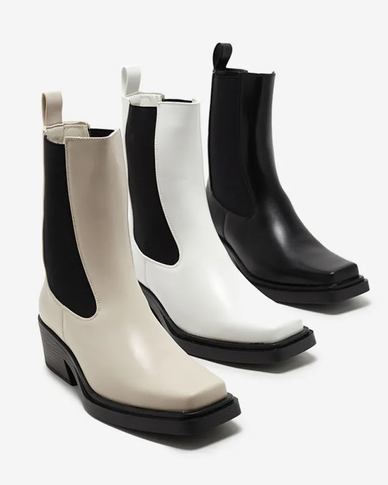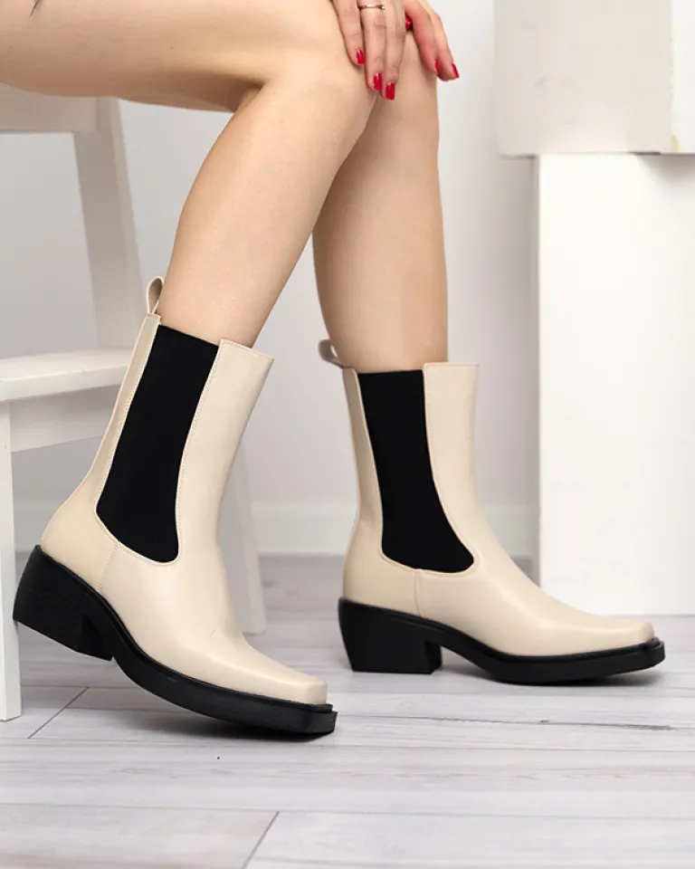 - Wysokie wsuwane damskie botki na niskim słupku wykonane z eko-skóry. Model posiada elastyczne wstawki po bokach oraz kwadratowy nosek. Buty są delikatnie ocieplane. CZARNE OCIEPLANE BOTKI DARRAN