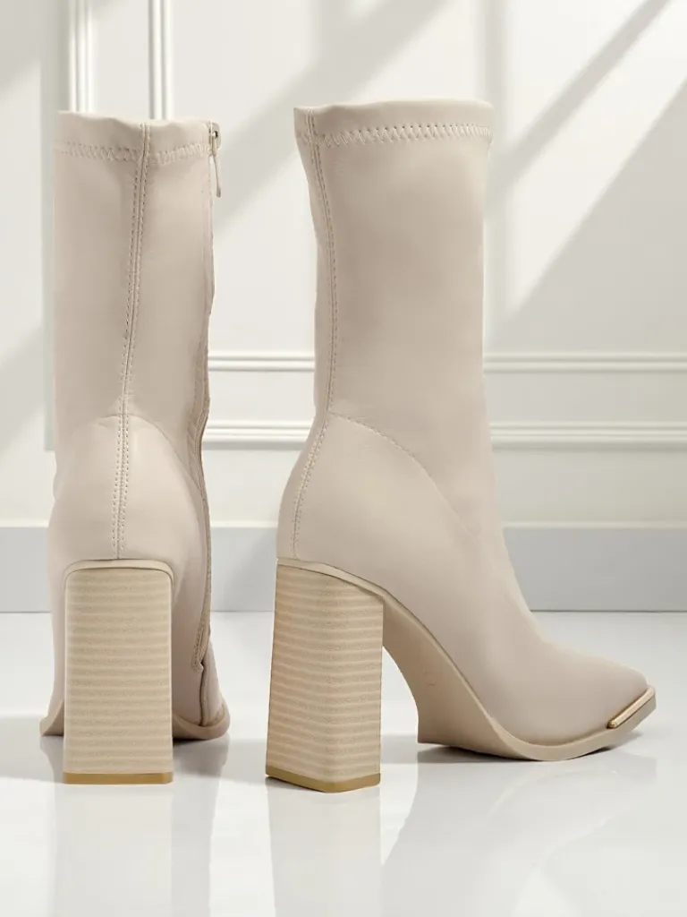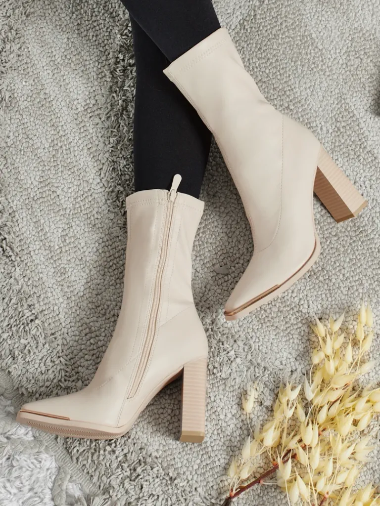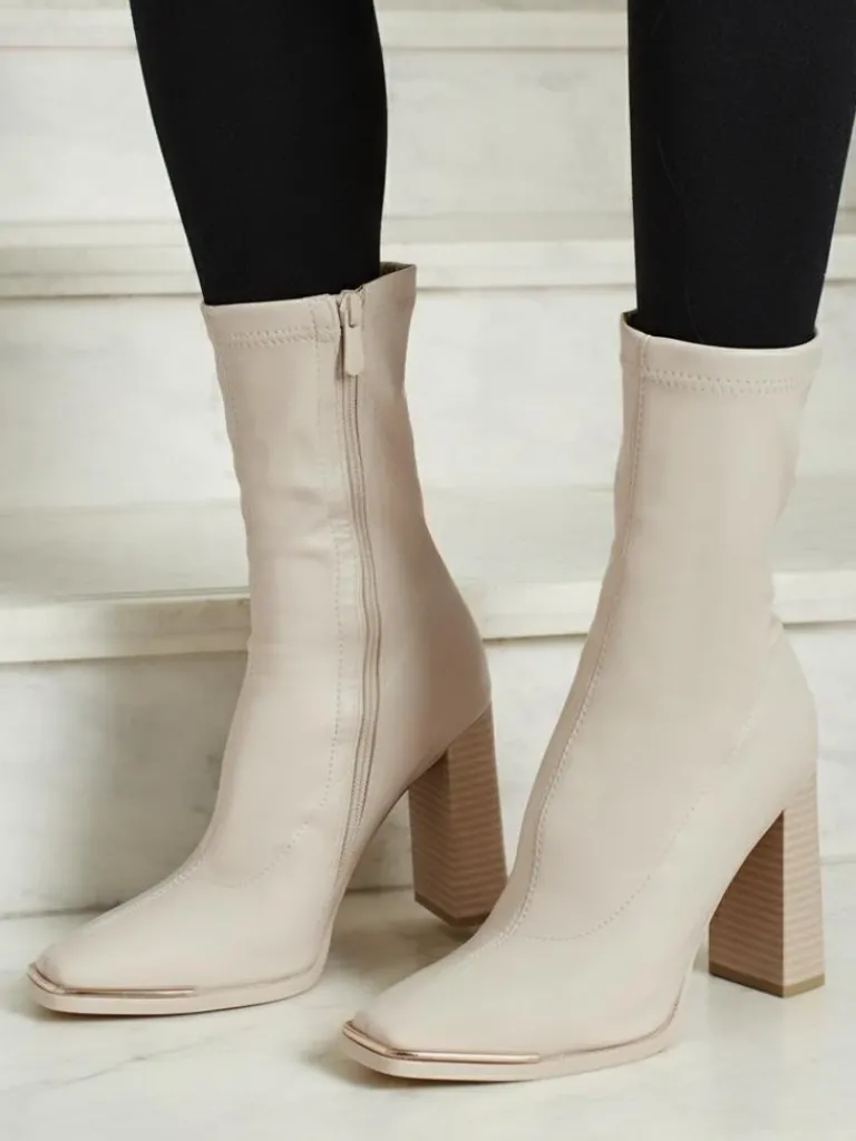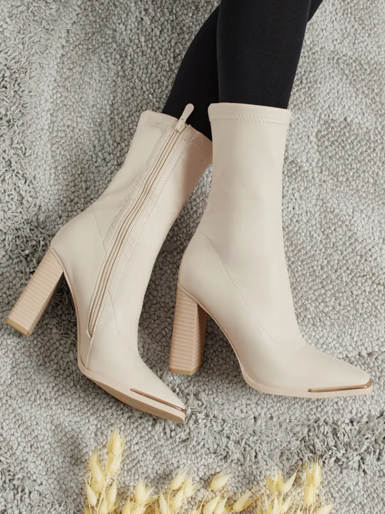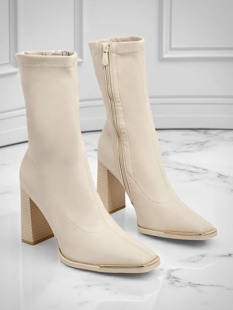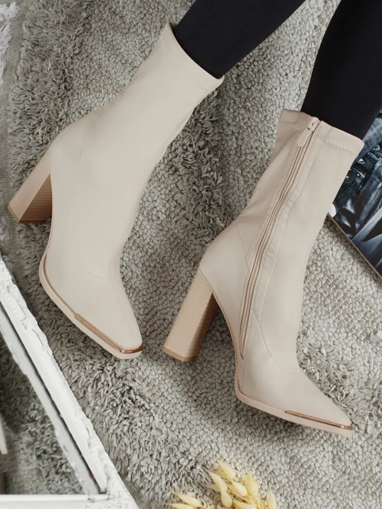 - Wygodne botki na słupku, wykonane z eko skóry. Model zapinany na zamek. Posiada wypełnienie tkaninowe..