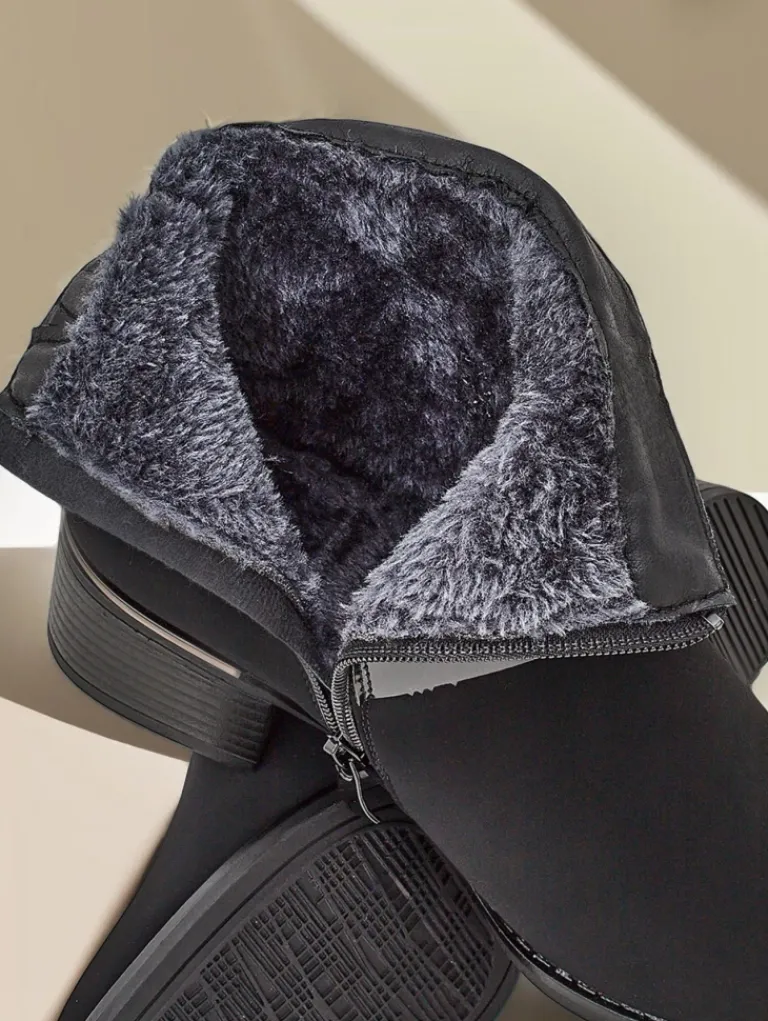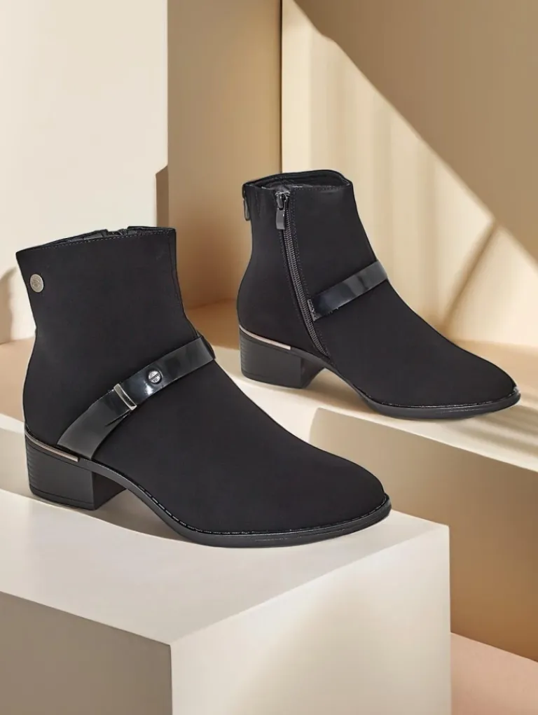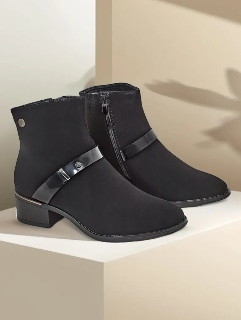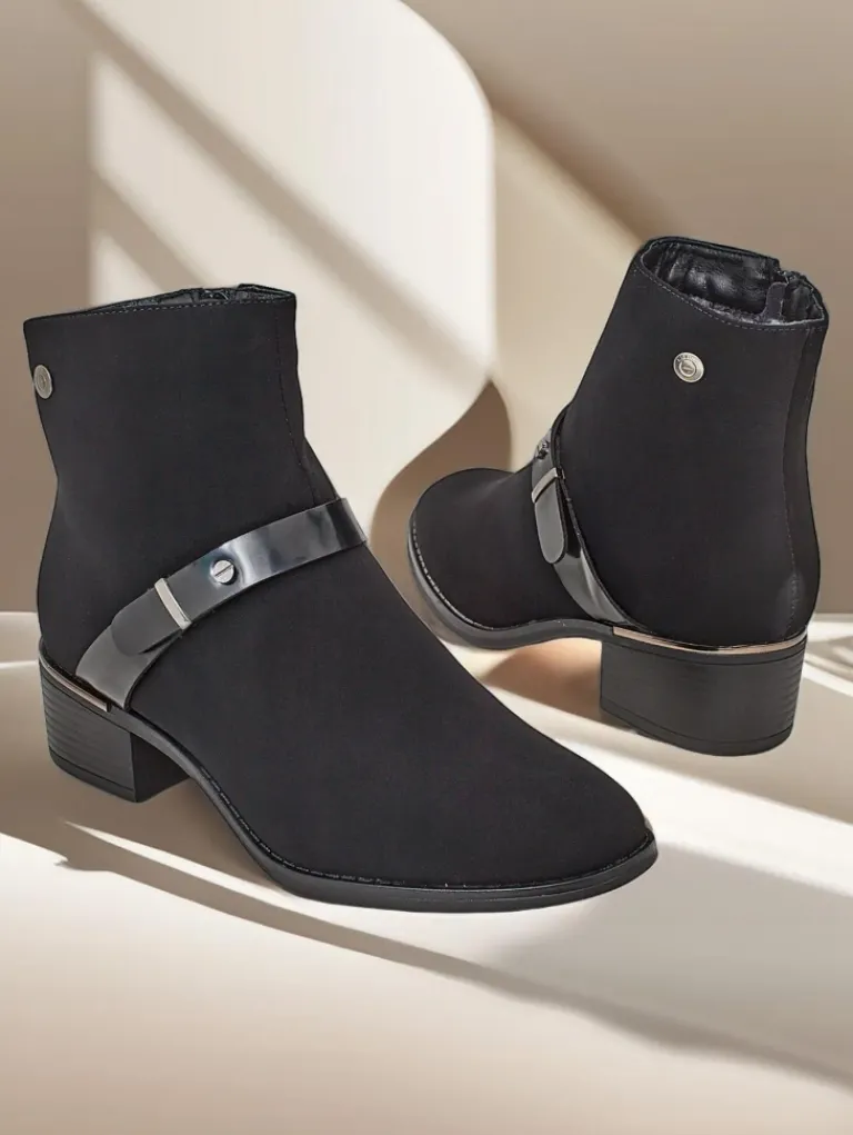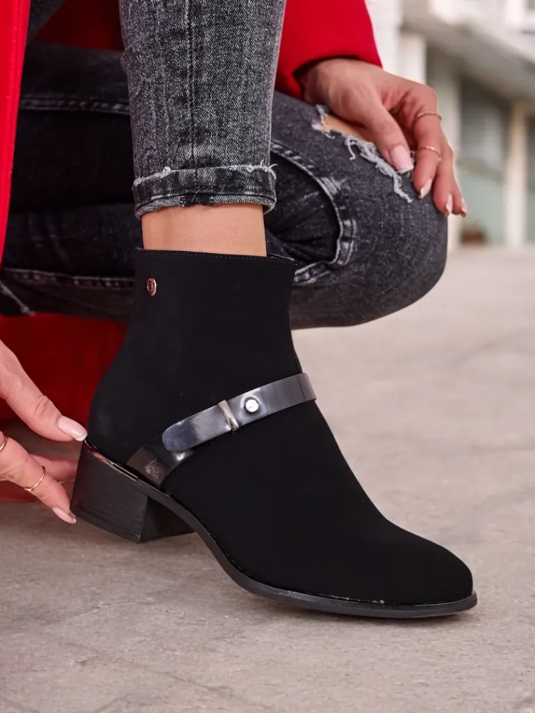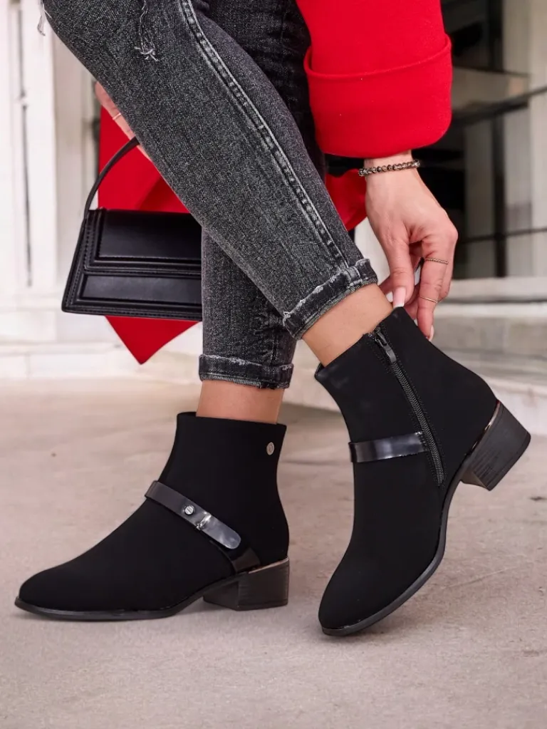 - Rewelacyjne botki damskie na płaskim obcasie, wykonane są z eko skóry matowej. Wnętrze wykonane z przyjemnego futerka. Model zapinany na suwak oraz posiada paseczek na cholewce. Idealne do jesiennych kreacji!