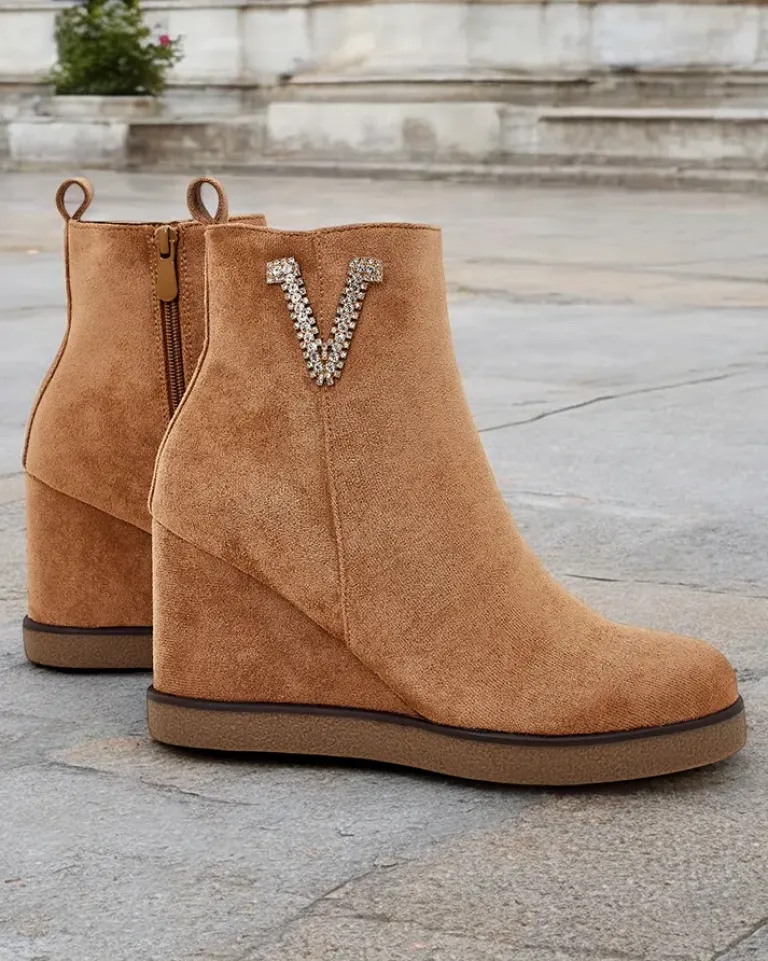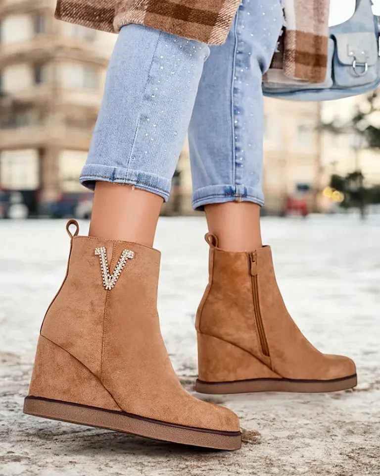 Sale Botki damskie na koturnie Nerias Botki Z Delikatnym Ociepleniem|Botki Na Koturnie