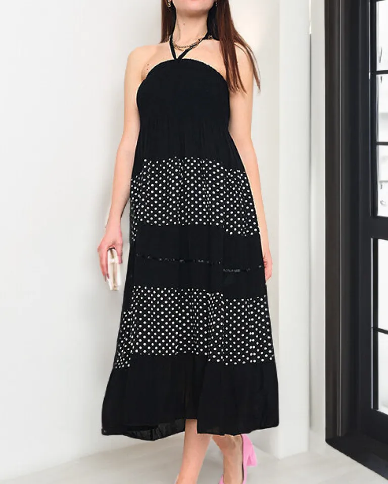 - Sukienka damska wykonana z połączenia materiału bawełnianego i poliestrowego. Model z podszewką, elastyczną górą i wiązaniem. UWAGA: Dokładność pomiaru (+/-) 1 cm.