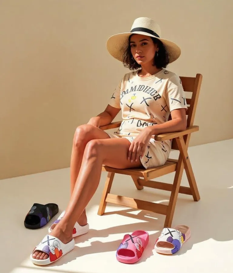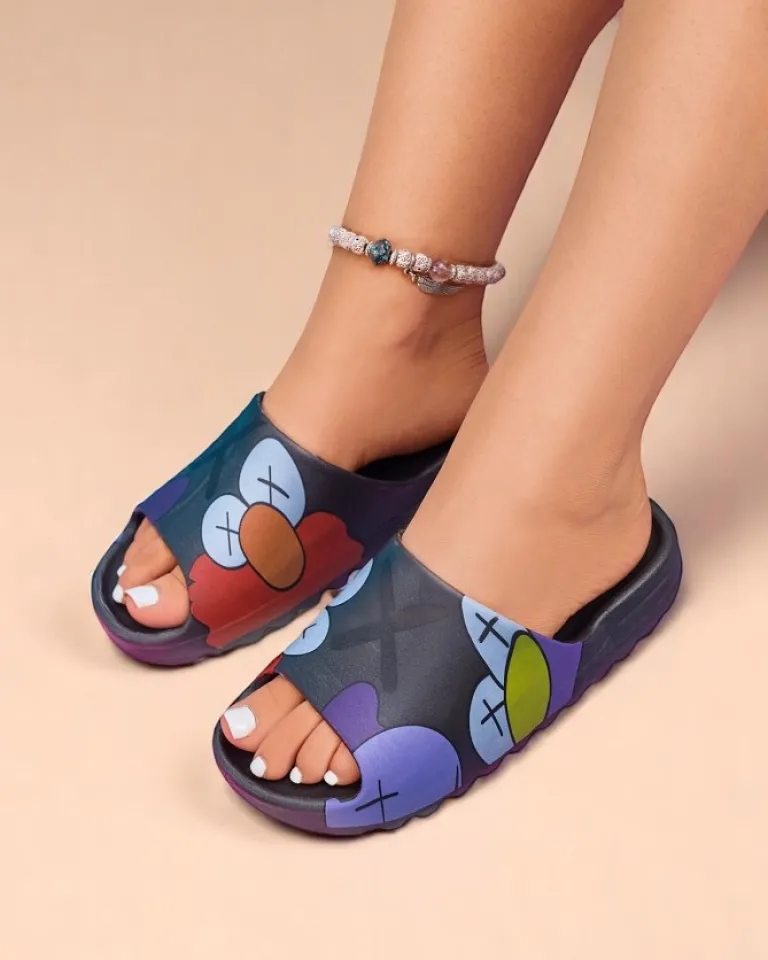 - Wygodne klapki damskie wykonane z tworzywa gumowego. Ciekawy print dodaje im stylu!
