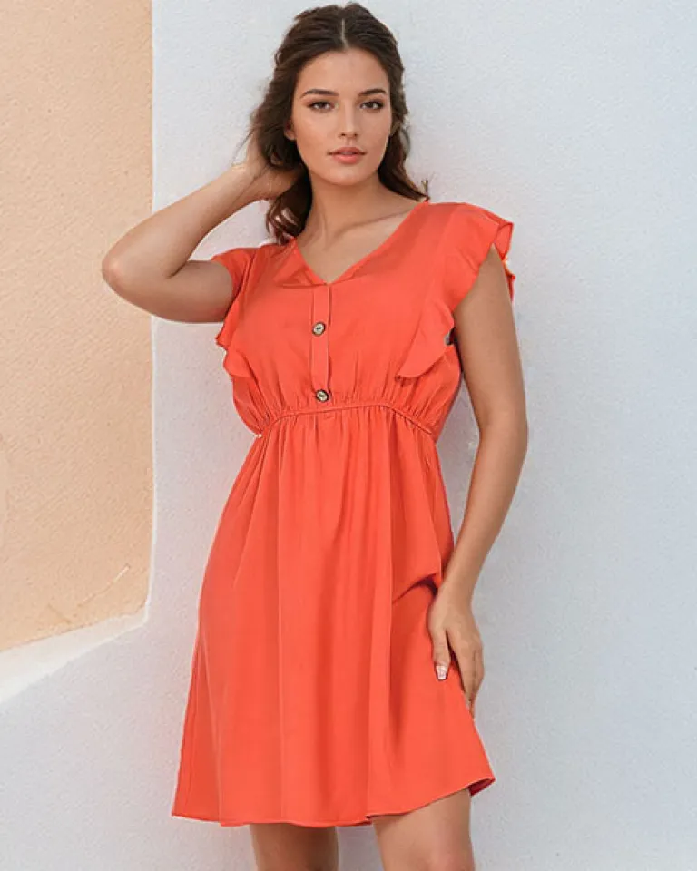 - Sukienka damska do kolana, z krótkimi rękawami i dekoltem V. Dodatkowo zdobiona guzikami. Must have tego sezonu! UWAGA: Dokładność pomiaru (+/-) 1 cm. Wymiary mierzone na płasko.