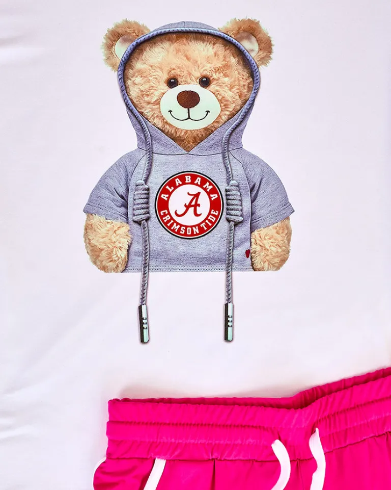 - Damski komplet wykonany z przyjemnego materiału. Model posiada nadruk z misiem. Bluzka z krótkimi rękawami oraz krótkie spodenki z gumą w pasie. Poczuj lato w tym wspaniałym komplecie!