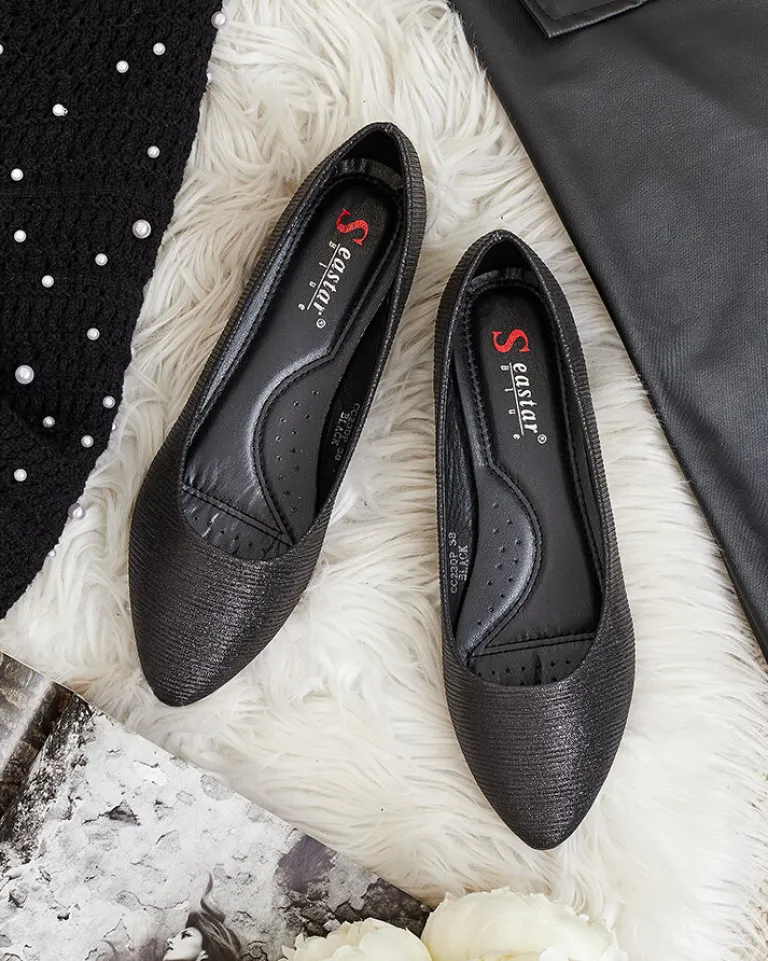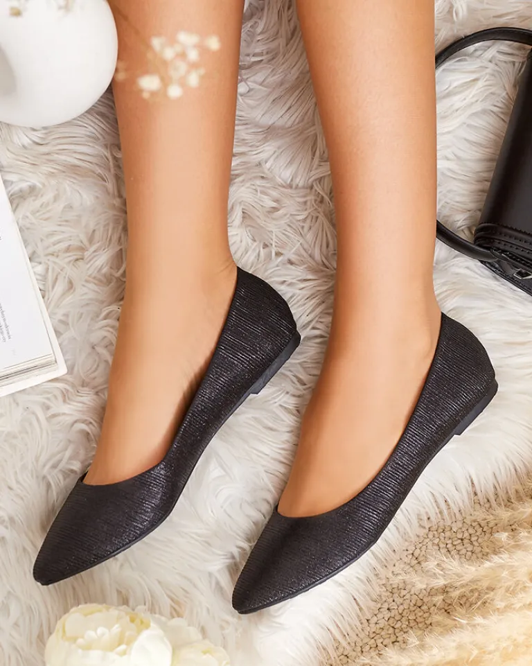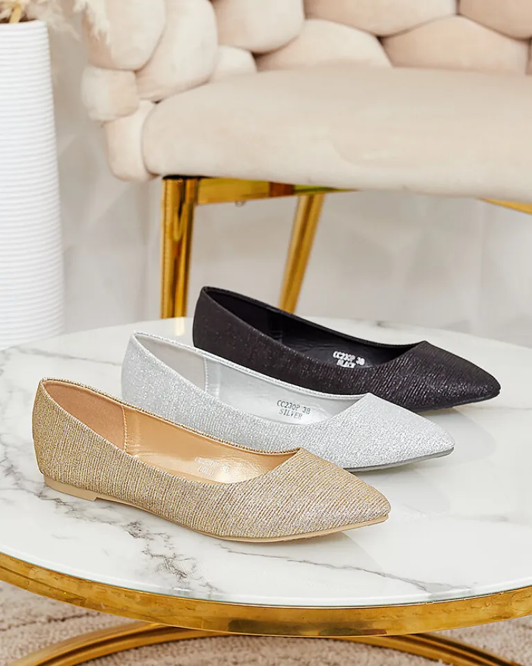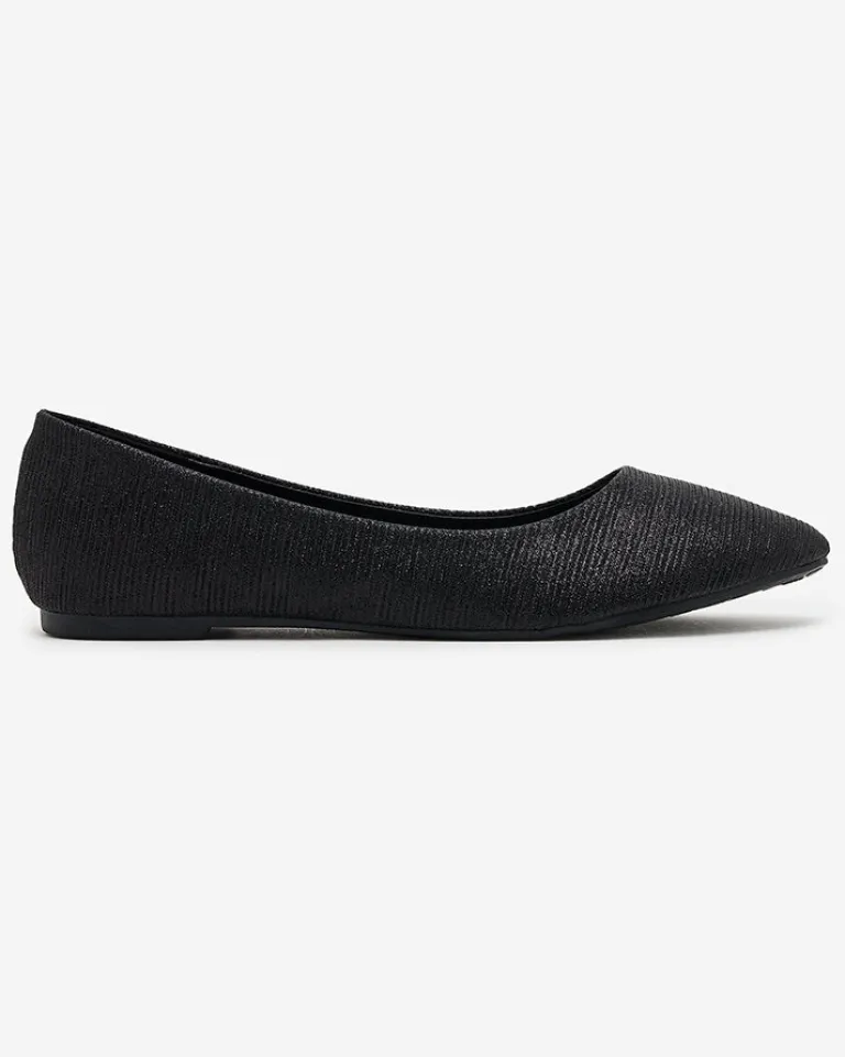 - Wyjątkowe baleriny wykonane z tkaniny z noskiem w szpic. Miękka eko-skórzana wkładka dostarczy komfortu. Brokat dodaje im uroku! Idealnie się sprawdzą do eleganckich i modnych stylizacji!