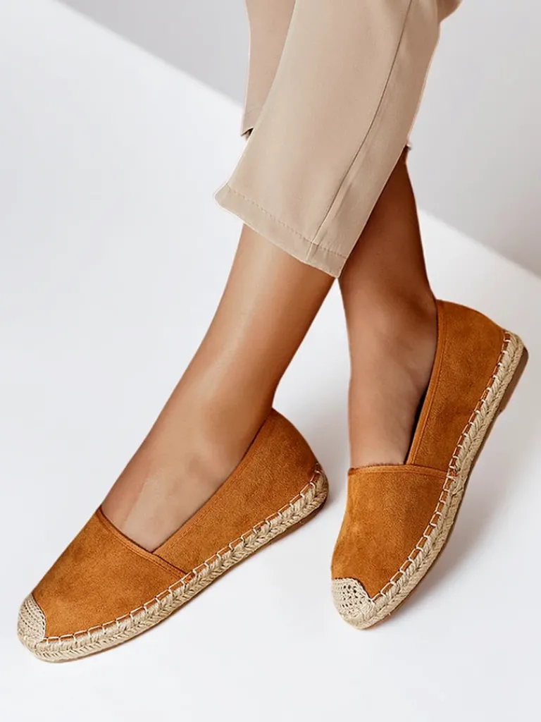 - Wyjątkowe damskie espadryle wykonane z eko skóry zamszowej i tkaninowej wkładki. Płaska podeszwa zdobiona sznurkiem jutowym zapewnia wygodę. Model wsuwany. Doskonały dodatek do letnich stylówek!
