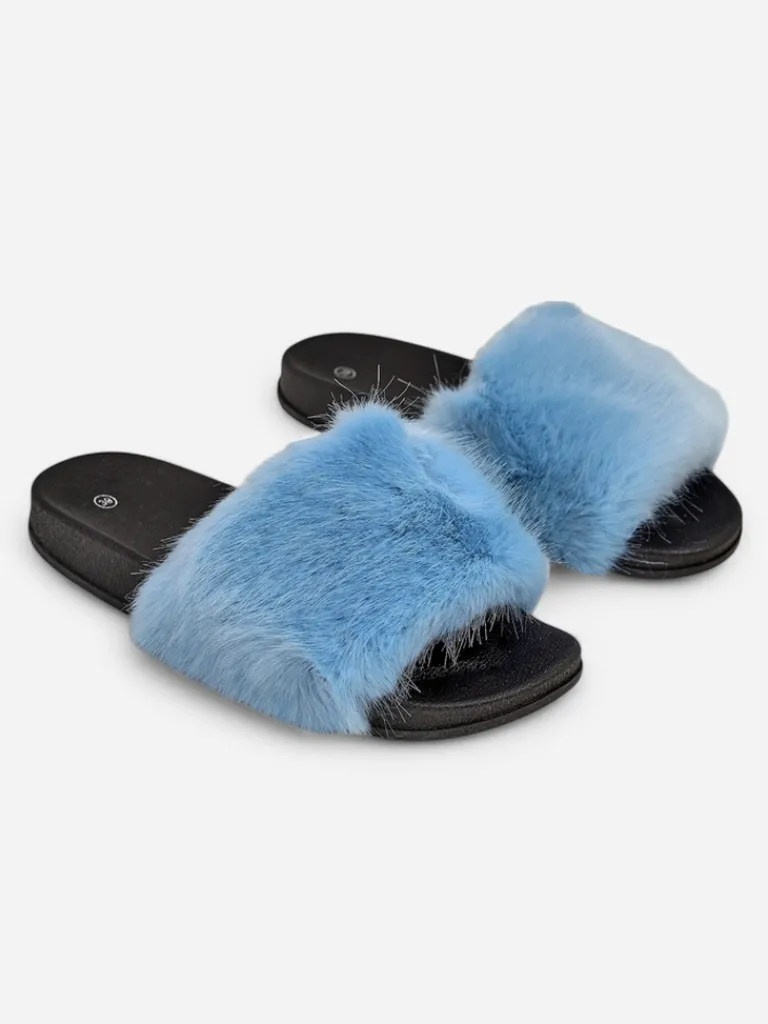 - Urocze damskie klapeczki wykonane z tworzywa gumowego. Model posiada ozdobne futerko na paseczku. Nadają się do wielu oryginalnych stylizacji.