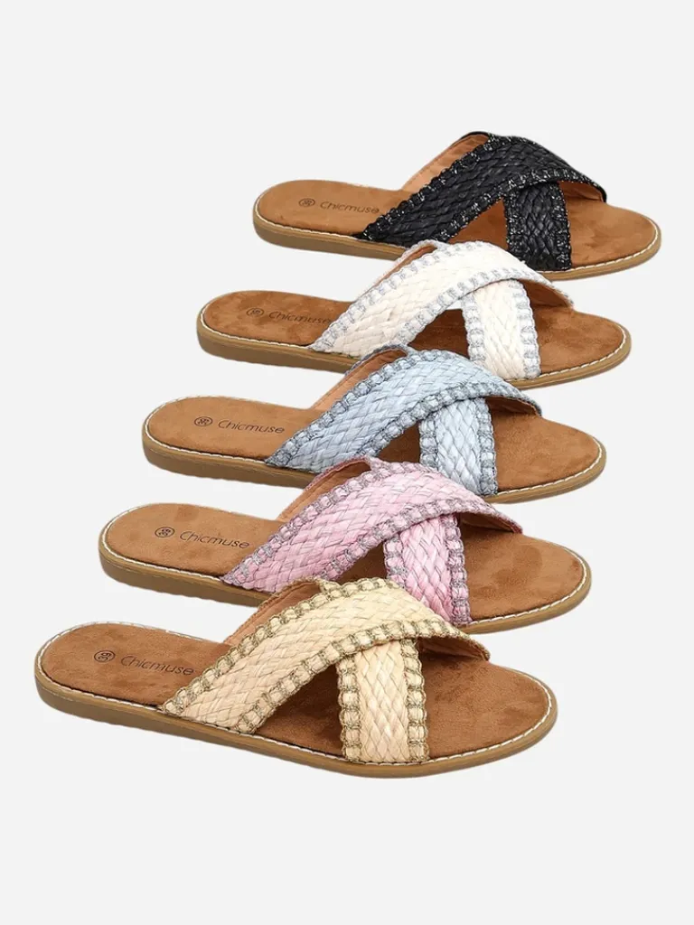 - Świetne damskie klapki na płaskiej podeszwie. Wykonane z eko skóry i eko zamszowej wkładki. Idealny wybór na wakacje!