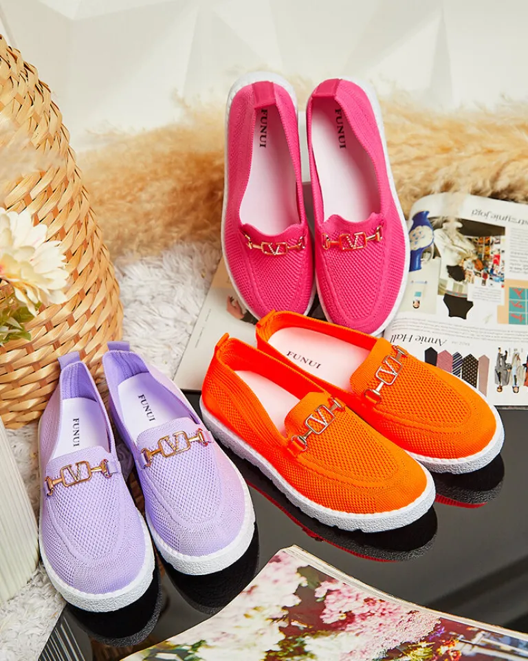 - Wygodne damskie mokasyny w stylu sportowego szyku. Cholewka wykonana z materiału tkaninowego, wkładka to również tkanina. Nosek udekorowany złotą, metalową ozdobą z cyrkoniami. Będą świetną ozdobą do codziennych stylizacji.