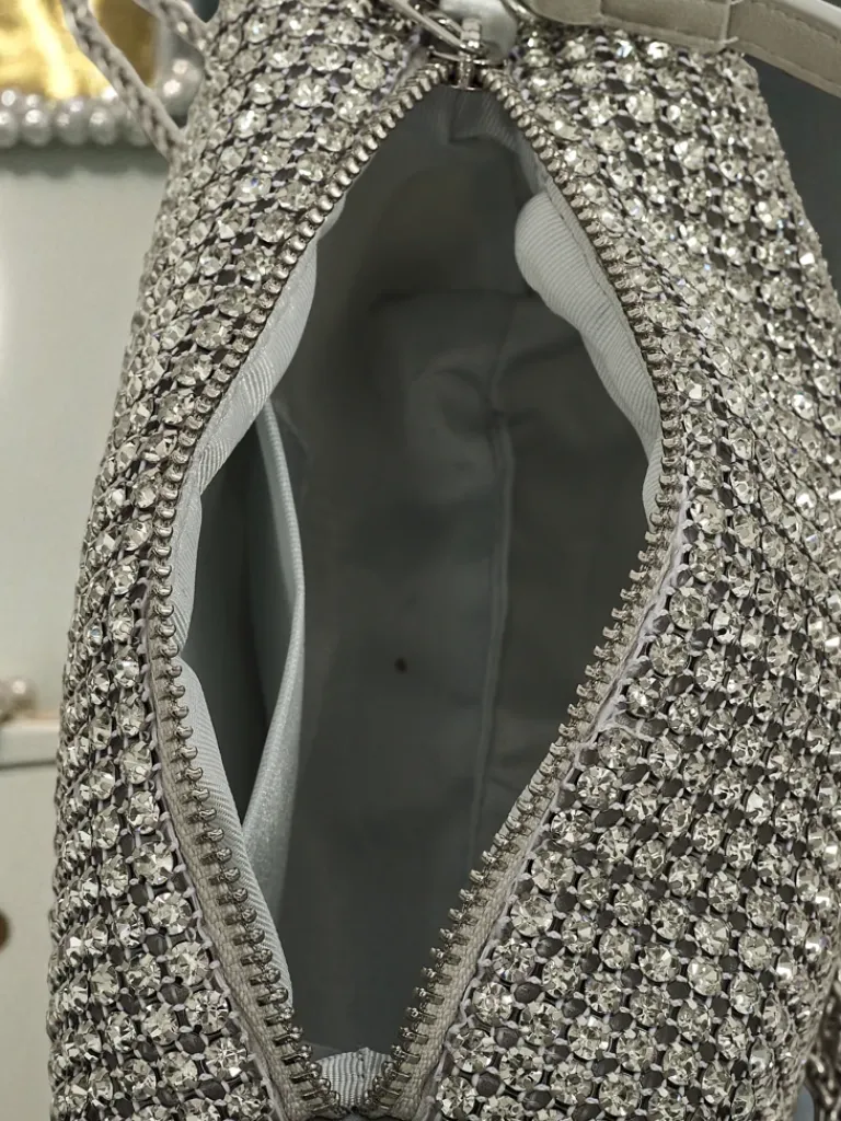 - Elegancka kopertówka z połyskującymi cyrkoniami, 1 komora, zamykana na zamek. Stylowe uszy i ozdobny łańcuszek dodają szyku. Idealna na wyjątkowe okazje – olśniewaj z klasą!